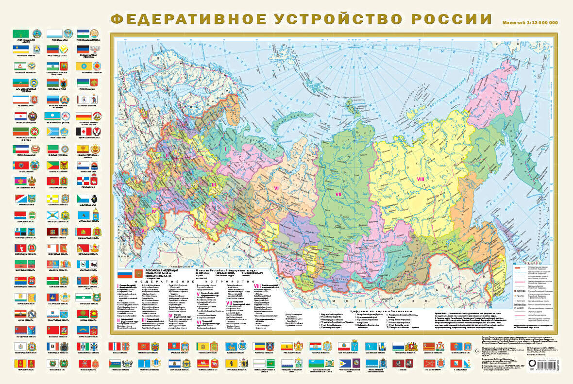 - Масштаб 1:44000000 (Политическая карта), 1:1200000 (Федеративная карта)