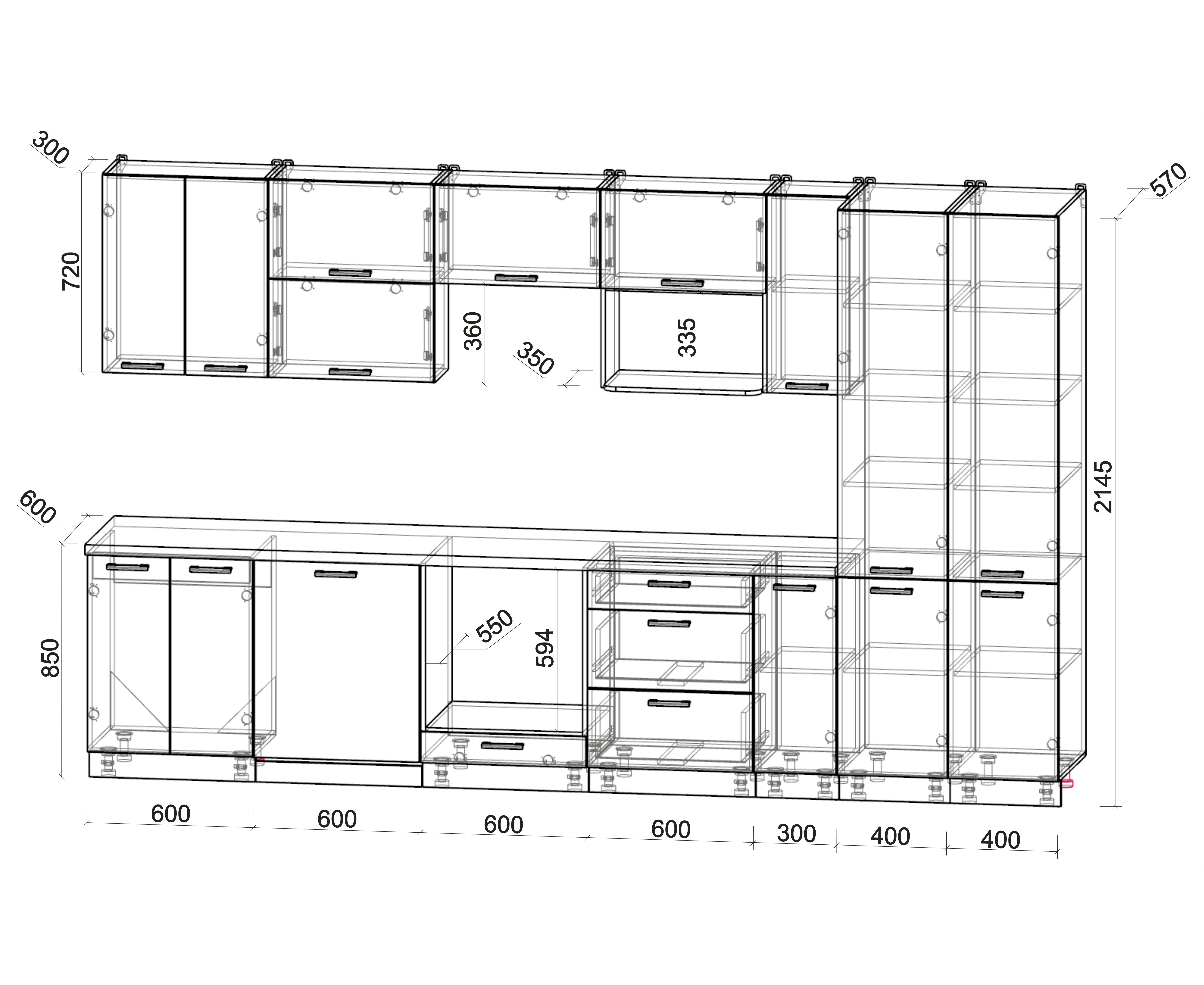 - Высота верхних шкафов 720 мм