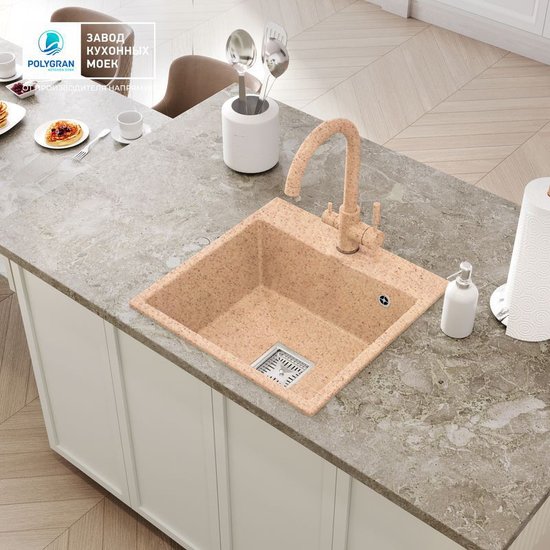 - ✅Ключевые характеристикиКухонная мойка из искусственного камня с квадратной формой и одной чашей идеально подходит для современных кухонь. Размеры 50 x 50 см обеспечивают достаточное пространство для мытья посуды и продуктов. Глубина чаши составляет 20 см; что позволяет удобно использовать мойку для различных задач.✅Преимущества и отличияМатериал на основе гранитной крошки обеспечивает высокую прочность и долговечность; а матовая поверхность предотвращает появление царапин и загрязнений. Установка врезным способом на столешницу позволяет создать стильный и современный вид кухни.✅ПрактичностьОтсутствие крыла делает мойку компактной и удобной для небольших кухонь. Перелив в основной чаше предотвращает переполнение; а минимальная ширина шкафа в 50 см позволяет легко интегрировать мойку в существующую мебель.✅УникальностьМойка представлена в песочном цвете; который гармонично вписывается в любой интерьер. Искусственный камень не только красив; но и функционален; обеспечивая легкость в уходе и долговечность. ✅Ключевые характеристикиКухонная мойка из искусственного камня с квадратной формой и одной чашей идеально подходит для современных кухонь. Размеры 50 x 50 см обеспечивают достаточное пространство для мытья посуды и продуктов. Глубина чаши составляет 20 см; что позволяет удобно использовать мойку для различных задач.✅Преимущества и отличияМатериал на основе гранитной крошки обеспечивает высокую прочность и долговечность; а матовая поверхность предотвращает появление царапин и загрязнений. Установка врезным способом на столешницу позволяет создать стильный и современный вид кухни.✅ПрактичностьОтсутствие крыла делает мойку компактной и удобной для небольших кухонь. Перелив в основной чаше предотвращает переполнение; а минимальная ширина шкафа в 50 см позволяет легко интегрировать мойку в существующую мебель.✅УникальностьМойка представлена в песочном цвете; который гармонично вписывается в любой интерьер. Искусственный камень не только красив; но и функционален; обеспечивая легкость в уходе и долговечность.