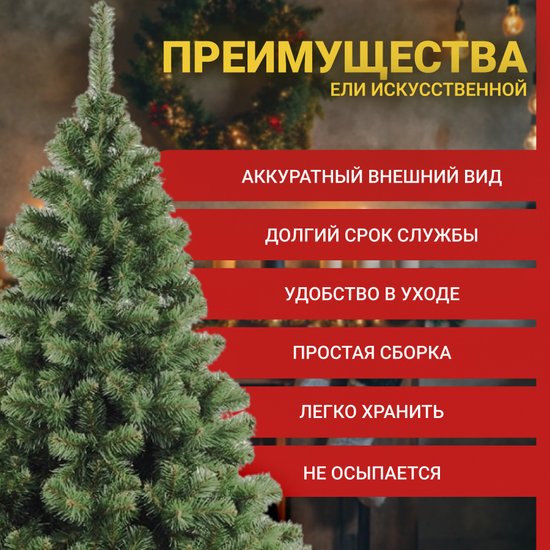 ✅ Искусственная елка с пышными ветками из ПВХ-пленки создаст уютную атмосферу в зимние праздники. Мягкие иголки безопасны для детей, так что они могут смело трогать ветки. При развешивании игрушек ветки легко отгибаются, а благодаря надежному креплению кусочки пленки не осыпаются.✅ Высота ели составляет 2.5 метра, что делает ее идеальной для просторных интерьеров. Она выполнена в зеленом цвете с натуральными кончиками, что придает ей свежий вид. Мягкая хвоя из ПВХ обеспечивает долговечность и защиту от повреждений, что делает эту искусственную ель отличным выбором для создания праздничной атмосферы.✅ Ветки крепятся проволокой с отгибными креплениями, что значительно упрощает сборку и разборку конструкции. Пластиковая подставка гарантирует устойчивость, а разборная конструкция облегчает хранение и транспортировку. Диаметр ели составляет 156 см, а длина макушки варьируется от 15 до 20 см, что добавляет ей объем и пышность.⚠️ Обратите внимание, что из-за технологии производства на верхней части елки может быть видна труба, которую можно скрыть, отогнув верхнюю ветку-макушку. ✅ Искусственная ель станет отличным выбором для тех, кто ценит практичность и удобство. Легкость в сборке и разборке позволяет быстро подготовить ее к праздникам и так же быстро убрать после их завершения. Мягкая хвоя из ПВХ обеспечивает долговечность и сохранение внешнего вида на долгие годы.✅ Искусственная елка с пышными ветками из ПВХ-пленки создаст уютную атмосферу в зимние праздники. Мягкие иголки безопасны для детей, так что они могут смело трогать ветки. При развешивании игрушек ветки легко отгибаются, а благодаря надежному креплению кусочки пленки не осыпаются.✅ Высота ели составляет 2.5 метра, что делает ее идеальной для просторных интерьеров. Она выполнена в зеленом цвете с натуральными кончиками, что придает ей свежий вид. Мягкая хвоя из ПВХ обеспечивает долговечность и защиту от повреждений, что делает эту искусственную ель отличным выбором для создания праздничной атмосферы.✅ Ветки крепятся проволокой с отгибными креплениями, что значительно упрощает сборку и разборку конструкции. Пластиковая подставка гарантирует устойчивость, а разборная конструкция облегчает хранение и транспортировку. Диаметр ели составляет 156 см, а длина макушки варьируется от 15 до 20 см, что добавляет ей объем и пышность.⚠️ Обратите внимание, что из-за технологии производства на верхней части елки может быть видна труба, которую можно скрыть, отогнув верхнюю ветку-макушку. ✅ Искусственная ель станет отличным выбором для тех, кто ценит практичность и удобство. Легкость в сборке и разборке позволяет быстро подготовить ее к праздникам и так же быстро убрать после их завершения. Мягкая хвоя из ПВХ обеспечивает долговечность и сохранение внешнего вида на долгие годы.