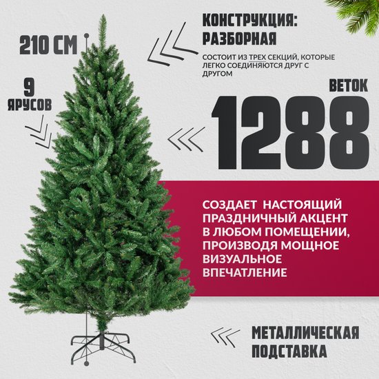 ✅ Искусственная ель «Winter Fun Drop / S2306-210» — это идеальное решение для создания яркой праздничной атмосферы в вашем интерьере. С высотой 2.1 м и диаметром 125 см, она станет эффектным акцентом, добавляя зелени и свежести в любое пространство. Мягкая хвоя из ПВХ придает ей натуральный вид, что делает ель отличным выбором для оформления как жилых, так и коммерческих помещений.✅ Цельная конструкция и три секции упрощают установку, обеспечивая надежность и стабильность. Металлическая подставка гарантирует устойчивость, что способствует долговечности использования. С 1288 ветками ель выглядит пышной и насыщенной, создавая атмосферу праздника. Крепление веток на шарнирах облегчает сборку, что особенно удобно в процессе подготовки к торжествам.✅ Искусственная ель для новогоднего декора станет стильным элементом, который будет радовать глаз и добавлять уют. Высота 2.1 м позволяет создавать эффектные акценты в интерьере, а 1288 веток обеспечивают богатый и объемный вид. Мягкая хвоя безопасна для детей и домашних животных, что делает ее идеальным выбором для семейного использования.✅ Упаковка в коробке упрощает транспортировку и хранение, что делает эту ель удобной в использовании. Winter Fun Drop подходит для оформления как традиционного, так и современного новогоднего стиля. Использование этой ели способствует созданию теплоты и уюта в доме, позволяя всегда быть готовым к праздникам и радовать близких великолепным оформлением. ⚠️ Не упустите возможность добавить этот стильный элемент в ваш интерьер!✅ Искусственная ель «Winter Fun Drop / S2306-210» — это идеальное решение для создания яркой праздничной атмосферы в вашем интерьере. С высотой 2.1 м и диаметром 125 см, она станет эффектным акцентом, добавляя зелени и свежести в любое пространство. Мягкая хвоя из ПВХ придает ей натуральный вид, что делает ель отличным выбором для оформления как жилых, так и коммерческих помещений.✅ Цельная конструкция и три секции упрощают установку, обеспечивая надежность и стабильность. Металлическая подставка гарантирует устойчивость, что способствует долговечности использования. С 1288 ветками ель выглядит пышной и насыщенной, создавая атмосферу праздника. Крепление веток на шарнирах облегчает сборку, что особенно удобно в процессе подготовки к торжествам.✅ Искусственная ель для новогоднего декора станет стильным элементом, который будет радовать глаз и добавлять уют. Высота 2.1 м позволяет создавать эффектные акценты в интерьере, а 1288 веток обеспечивают богатый и объемный вид. Мягкая хвоя безопасна для детей и домашних животных, что делает ее идеальным выбором для семейного использования.✅ Упаковка в коробке упрощает транспортировку и хранение, что делает эту ель удобной в использовании. Winter Fun Drop подходит для оформления как традиционного, так и современного новогоднего стиля. Использование этой ели способствует созданию теплоты и уюта в доме, позволяя всегда быть готовым к праздникам и радовать близких великолепным оформлением. ⚠️ Не упустите возможность добавить этот стильный элемент в ваш интерьер!