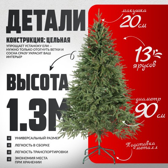 ✅ Искусственная ель высотой 1.3 м — идеальный выбор для создания волшебной атмосферы в вашем доме. Изготовленная из качественного PE-полиэтилена, она выглядит очень натурально и прослужит вам долго. Литая хвоя и стандартная форма делают ее похожей на настоящую, а зеленые ветки добавляют естественности.✅ Особенности этой искусственной ели Maxy Poland включают литую хвою, которая обеспечивает долговечность и реалистичный вид. Металлическая подставка гарантирует устойчивость, а цельная конструкция упрощает сборку и установку. Высота 1.3 м и диаметр 90 см позволяют легко разместить ель в любом интерьере.✅ Проволочное крепление веток обеспечивает надежность и удобство в использовании. Искусственная ель станет великолепным украшением для любого пространства, создавая уют и праздничное настроение. Компактные размеры позволяют разместить ее даже в небольших помещениях, а отсутствие шишек и украшений дает возможность декорировать ель по своему вкусу. ⚠️ Не упустите шанс добавить этот элемент в ваш интерьер для создания незабываемой атмосферы!✅ Искусственная ель высотой 1.3 м — идеальный выбор для создания волшебной атмосферы в вашем доме. Изготовленная из качественного PE-полиэтилена, она выглядит очень натурально и прослужит вам долго. Литая хвоя и стандартная форма делают ее похожей на настоящую, а зеленые ветки добавляют естественности.✅ Особенности этой искусственной ели Maxy Poland включают литую хвою, которая обеспечивает долговечность и реалистичный вид. Металлическая подставка гарантирует устойчивость, а цельная конструкция упрощает сборку и установку. Высота 1.3 м и диаметр 90 см позволяют легко разместить ель в любом интерьере.✅ Проволочное крепление веток обеспечивает надежность и удобство в использовании. Искусственная ель станет великолепным украшением для любого пространства, создавая уют и праздничное настроение. Компактные размеры позволяют разместить ее даже в небольших помещениях, а отсутствие шишек и украшений дает возможность декорировать ель по своему вкусу. ⚠️ Не упустите шанс добавить этот элемент в ваш интерьер для создания незабываемой атмосферы!