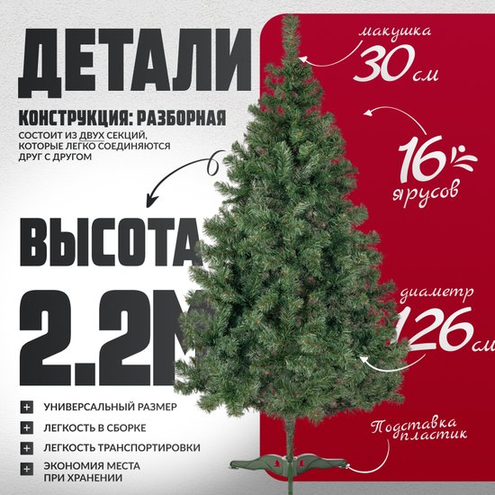 ✅ Искусственная ель Горная высотой 2.2 м — идеальный выбор для создания волшебной атмосферы в вашем доме. Изготовленная из качественного ПВХ, она выглядит очень натурально и прослужит вам долго. Мягкая хвоя и классическая форма делают ее похожей на настоящую ель, а зеленые ветки добавляют живости.✅ Особенности этой искусственной ели включают мягкую хвою из ПВХ, что обеспечивает не только долговечность, но и реалистичный внешний вид. Пластиковая подставка гарантирует устойчивость, а разборная конструкция облегчает сборку и хранение. Высота 2.2 м и диаметр 126 см позволяют разместить ель в любом интерьере, будь то уютная квартира или просторный зал.✅ Проволочное крепление веток обеспечивает надежность и удобство в использовании, что делает процесс декорирования простым и приятным. Искусственная ель станет великолепным украшением вашего пространства, создавая атмосферу уюта и праздника. Отсутствие шишек и украшений дает вам возможность проявить креативность и оформить ель по своему вкусу. ⚠️ Не упустите шанс сделать ваш праздник незабываемым!✅ Искусственная ель Горная высотой 2.2 м — идеальный выбор для создания волшебной атмосферы в вашем доме. Изготовленная из качественного ПВХ, она выглядит очень натурально и прослужит вам долго. Мягкая хвоя и классическая форма делают ее похожей на настоящую ель, а зеленые ветки добавляют живости.✅ Особенности этой искусственной ели включают мягкую хвою из ПВХ, что обеспечивает не только долговечность, но и реалистичный внешний вид. Пластиковая подставка гарантирует устойчивость, а разборная конструкция облегчает сборку и хранение. Высота 2.2 м и диаметр 126 см позволяют разместить ель в любом интерьере, будь то уютная квартира или просторный зал.✅ Проволочное крепление веток обеспечивает надежность и удобство в использовании, что делает процесс декорирования простым и приятным. Искусственная ель станет великолепным украшением вашего пространства, создавая атмосферу уюта и праздника. Отсутствие шишек и украшений дает вам возможность проявить креативность и оформить ель по своему вкусу. ⚠️ Не упустите шанс сделать ваш праздник незабываемым!