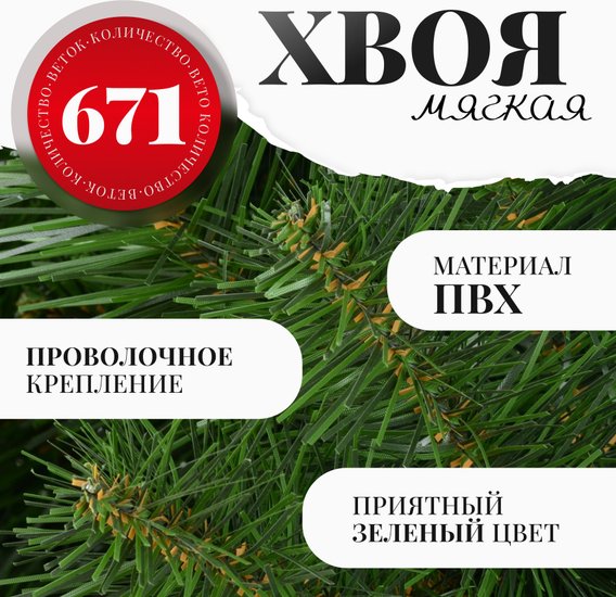 ✅ Искусственная сосна Sosna сибирская 220 — идеальный выбор для создания волшебной атмосферы в вашем доме. Стандартная форма и насыщенный зеленый цвет придают дереву естественный вид, а мягкая хвоя из ПВХ делает его безопасным и приятным на ощупь.✅ С высотой 2.2 метра и диаметром 134 см, это дерево легко впишется в любой интерьер. Разборная конструкция с тремя секциями упрощает хранение и транспортировку, а пластиковая подставка обеспечивает надежную устойчивость и долговечность.✅ С 671 веткой и 15 ярусами веток, сосна выглядит пышной и объемной, что позволяет равномерно распределить украшения и создать поистине праздничное настроение. Это идеальное решение для новогоднего декора и создания уютной атмосферы в вашем доме.⚠️ Обратите внимание, что размер товара и внешний вид на фото могут отличаться от действительного.✅ Искусственная сосна Sosna сибирская 220 — идеальный выбор для создания волшебной атмосферы в вашем доме. Стандартная форма и насыщенный зеленый цвет придают дереву естественный вид, а мягкая хвоя из ПВХ делает его безопасным и приятным на ощупь.✅ С высотой 2.2 метра и диаметром 134 см, это дерево легко впишется в любой интерьер. Разборная конструкция с тремя секциями упрощает хранение и транспортировку, а пластиковая подставка обеспечивает надежную устойчивость и долговечность.✅ С 671 веткой и 15 ярусами веток, сосна выглядит пышной и объемной, что позволяет равномерно распределить украшения и создать поистине праздничное настроение. Это идеальное решение для новогоднего декора и создания уютной атмосферы в вашем доме.⚠️ Обратите внимание, что размер товара и внешний вид на фото могут отличаться от действительного.