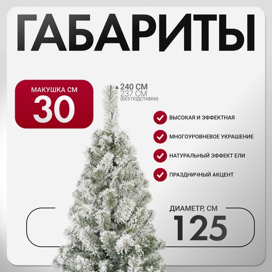 ✅ Искусственная ель Оливия заснеженная (2.4 м) — идеальный выбор для создания волшебной атмосферы в вашем доме или офисе. Стандартная форма и эффект заснеженности с белыми кончиками придают ей изысканный зимний вид, который станет центром внимания в любое время года.✅ Особенности этой ели включают мягкую хвою из ПВХ, что обеспечивает не только реалистичный внешний вид, но и долговечность. Удобное крепление веток на шарнирах делает сборку и разборку конструкции простой и быстрой.✅ Металлическая подставка гарантирует устойчивость и надежность, а разборная конструкция с тремя секциями облегчает хранение и транспортировку. Высота 2.4 м и диаметр 125 см позволяют разместить ель в самых разных интерьерах.✅ Белые кончики веток создают эффект заснеженности, добавляя праздничного настроения в любое пространство. Длина макушки в 30 см позволяет удобно установить верхушку, завершив оформление.⚠️ Искусственная ель Оливия станет отличным дополнением к вашему новогоднему декору, а благодаря качественным материалам и прочной конструкции, она прослужит вам долгие годы, сохраняя свой первоначальный вид.✅ Искусственная ель Оливия заснеженная (2.4 м) — идеальный выбор для создания волшебной атмосферы в вашем доме или офисе. Стандартная форма и эффект заснеженности с белыми кончиками придают ей изысканный зимний вид, который станет центром внимания в любое время года.✅ Особенности этой ели включают мягкую хвою из ПВХ, что обеспечивает не только реалистичный внешний вид, но и долговечность. Удобное крепление веток на шарнирах делает сборку и разборку конструкции простой и быстрой.✅ Металлическая подставка гарантирует устойчивость и надежность, а разборная конструкция с тремя секциями облегчает хранение и транспортировку. Высота 2.4 м и диаметр 125 см позволяют разместить ель в самых разных интерьерах.✅ Белые кончики веток создают эффект заснеженности, добавляя праздничного настроения в любое пространство. Длина макушки в 30 см позволяет удобно установить верхушку, завершив оформление.⚠️ Искусственная ель Оливия станет отличным дополнением к вашему новогоднему декору, а благодаря качественным материалам и прочной конструкции, она прослужит вам долгие годы, сохраняя свой первоначальный вид.