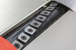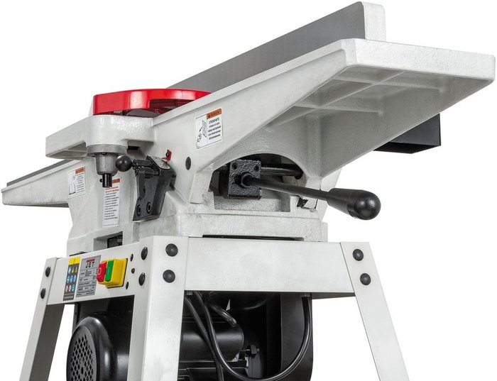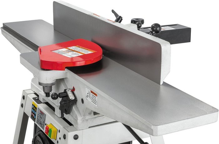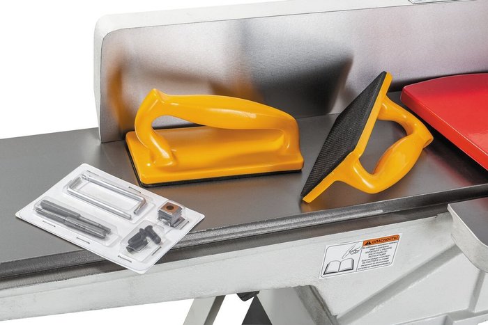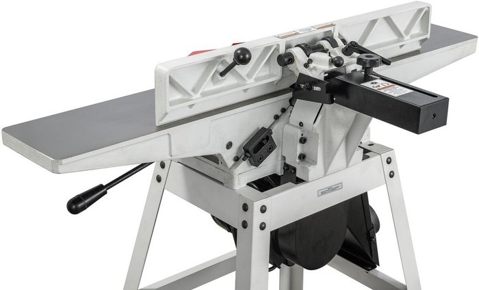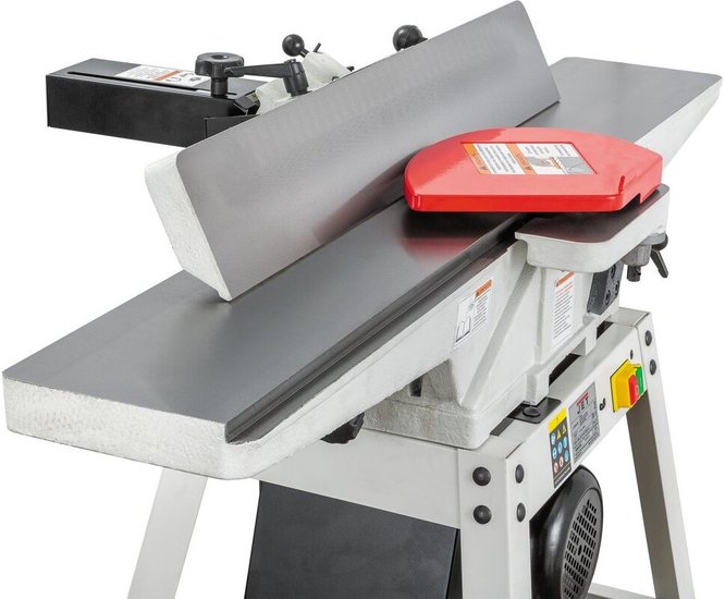 Особенности:Cтрогальный вал helicalРегулировка глубины строганияРегулируемый фуговальный упорCдвижное ограждение ножевого валаФуговальные столы из чугунного литьяКомплект опорных ног для напольной установкиJJ-6HH OS — фуговальный станок для любительского применения с длинными чугунными столами и сегментированным вылом helical. Имеет классический дизайн с регулировкой высоты столов по наклонным направляющим. Базируется на открытой подставке, в пространстве которой расположен асинхронный однофазный двигатель. Привод ножевого барабана одним клиновым ремнем. Регулируемый фуговальный упор и его кронштейн сделаны из массивных чугунных отливок. Сдвижной защитный экран алюминиевый. Удаление стружки производится через 100-миллиметровый патрубок и кожух, расположенные снизу станка.Строгание производится валом helical, который оснащен тридцатью твердосплавными режущими сегментами, каждый из которых имеет четыре грани для переворачивания при износе. Лезвия расположены в несколько спиральных рядов и имеют скругленные радиусные кромки, за счет чего достигается более качественное без характерной для прямых ножей «гребенки» строгание, снижается вероятность выкрашивания сучков и разлохмачивания волокон на свилеватых участках. Уменьшается уровень вибрации, стружка отходит более мелкая – она не забивает каналы системы аспирации и плотнее укладывается в накопитель.Особенности:Cтрогальный вал helicalРегулировка глубины строганияРегулируемый фуговальный упорCдвижное ограждение ножевого валаФуговальные столы из чугунного литьяКомплект опорных ног для напольной установкиJJ-6HH OS — фуговальный станок для любительского применения с длинными чугунными столами и сегментированным вылом helical. Имеет классический дизайн с регулировкой высоты столов по наклонным направляющим. Базируется на открытой подставке, в пространстве которой расположен асинхронный однофазный двигатель. Привод ножевого барабана одним клиновым ремнем. Регулируемый фуговальный упор и его кронштейн сделаны из массивных чугунных отливок. Сдвижной защитный экран алюминиевый. Удаление стружки производится через 100-миллиметровый патрубок и кожух, расположенные снизу станка.Строгание производится валом helical, который оснащен тридцатью твердосплавными режущими сегментами, каждый из которых имеет четыре грани для переворачивания при износе. Лезвия расположены в несколько спиральных рядов и имеют скругленные радиусные кромки, за счет чего достигается более качественное без характерной для прямых ножей «гребенки» строгание, снижается вероятность выкрашивания сучков и разлохмачивания волокон на свилеватых участках. Уменьшается уровень вибрации, стружка отходит более мелкая – она не забивает каналы системы аспирации и плотнее укладывается в накопитель.
