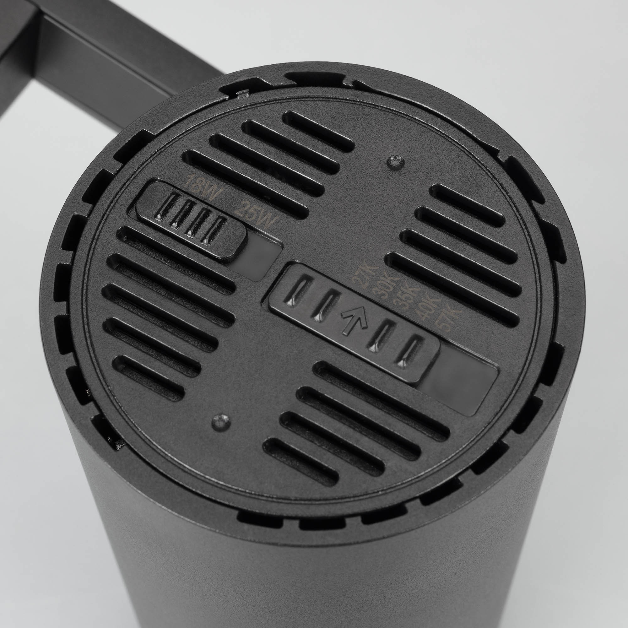 Трековый светильник URANUS с изменяемой мощностью 18/25Вт (при помощи переключателя на корпусе) предназначен для акцентного освещения общественных, коммерческих и торговых помещений. Возможность переключения цветовой температуры на корпусе светильника в диапазоне 2700K/3000K/3500K/4000K/5700K, а также регулируемый угол излучения 20-50° позволит эффективно подсветить различные зоны в помещении, используя только один вид светильника. Боковое крепление светового модуля увеличивает угол наклона и поворота корпуса светильника, позволяя мгновенно менять световые акценты.