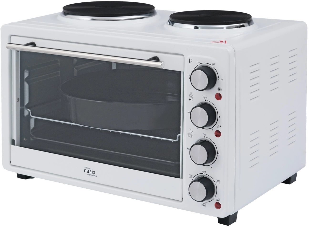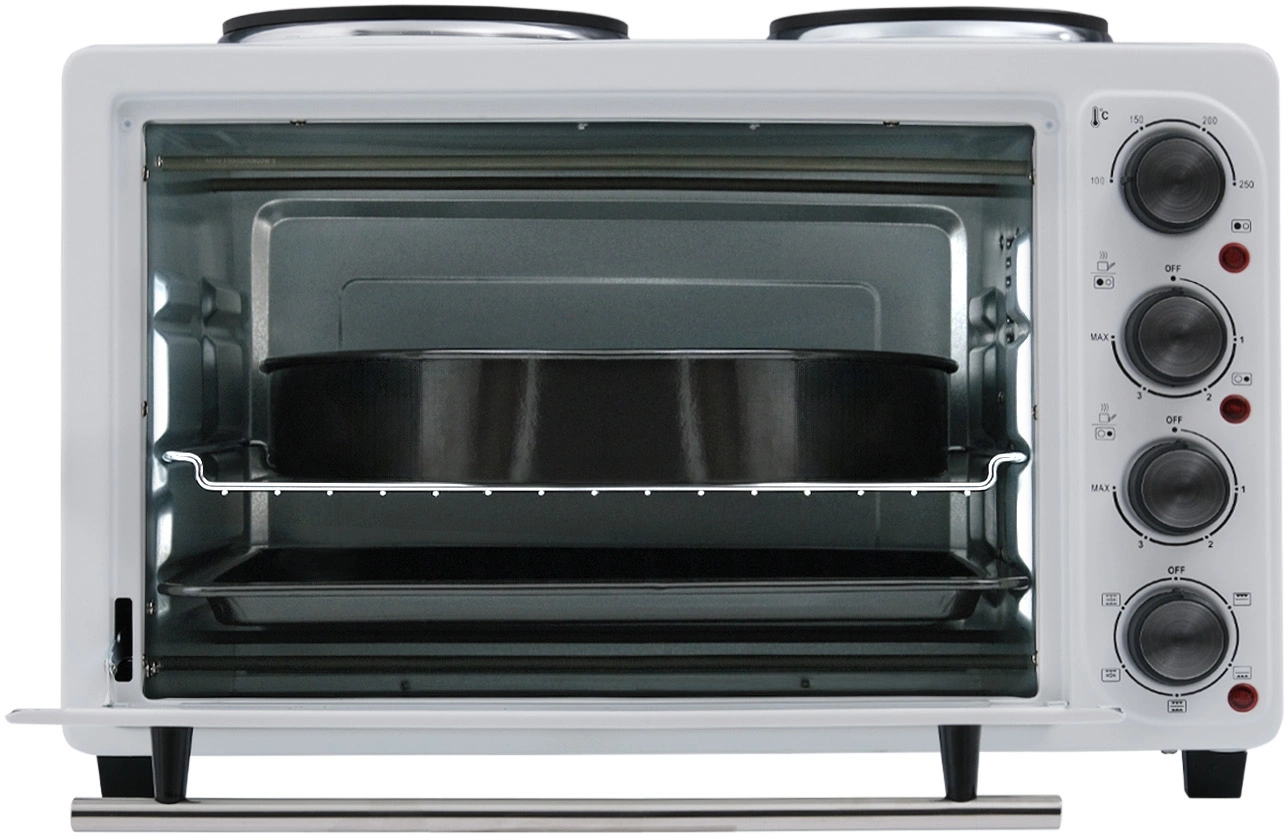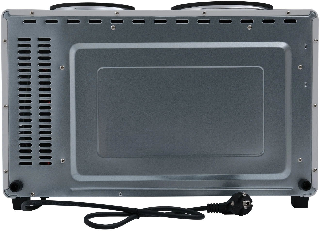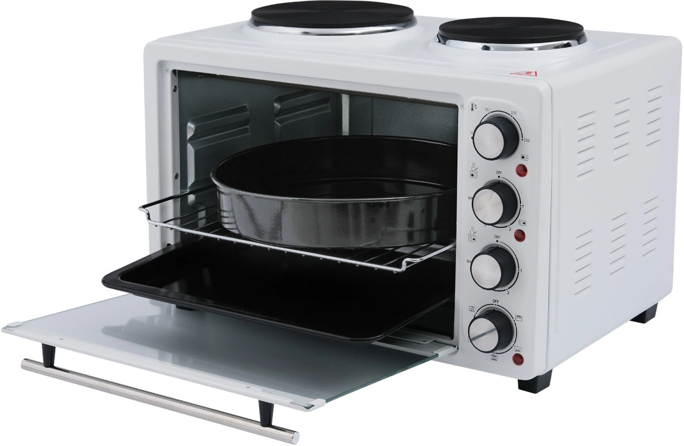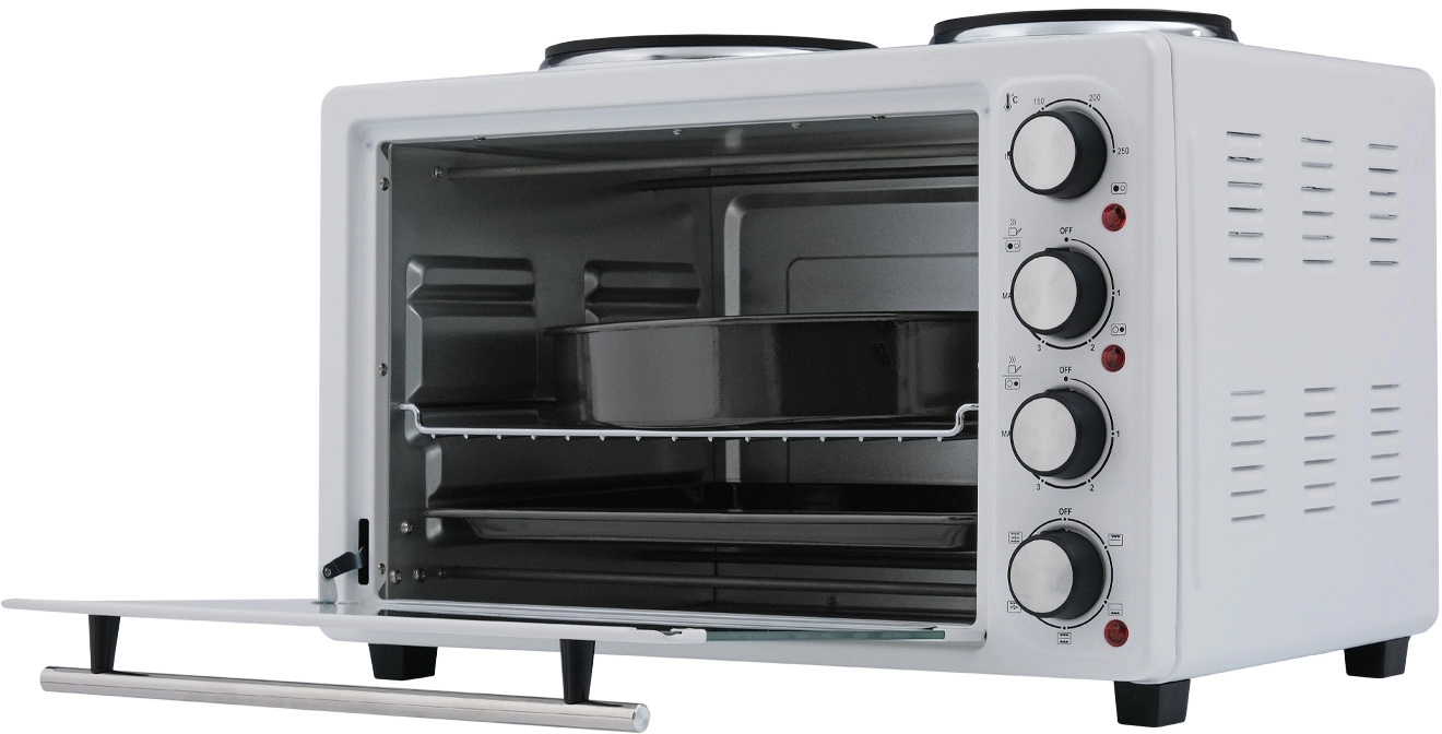 ОсобенностиМощный нагрев 1500+700/1000 Вт 2 конфорки разного диаметра Максимальная температура 250°С Эмалированная износостойкая внутренняя поверхность Функция конвекции Противерь и решётка в комплекте 2в1 - варочная панель и печь