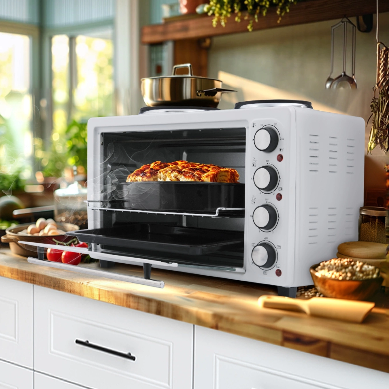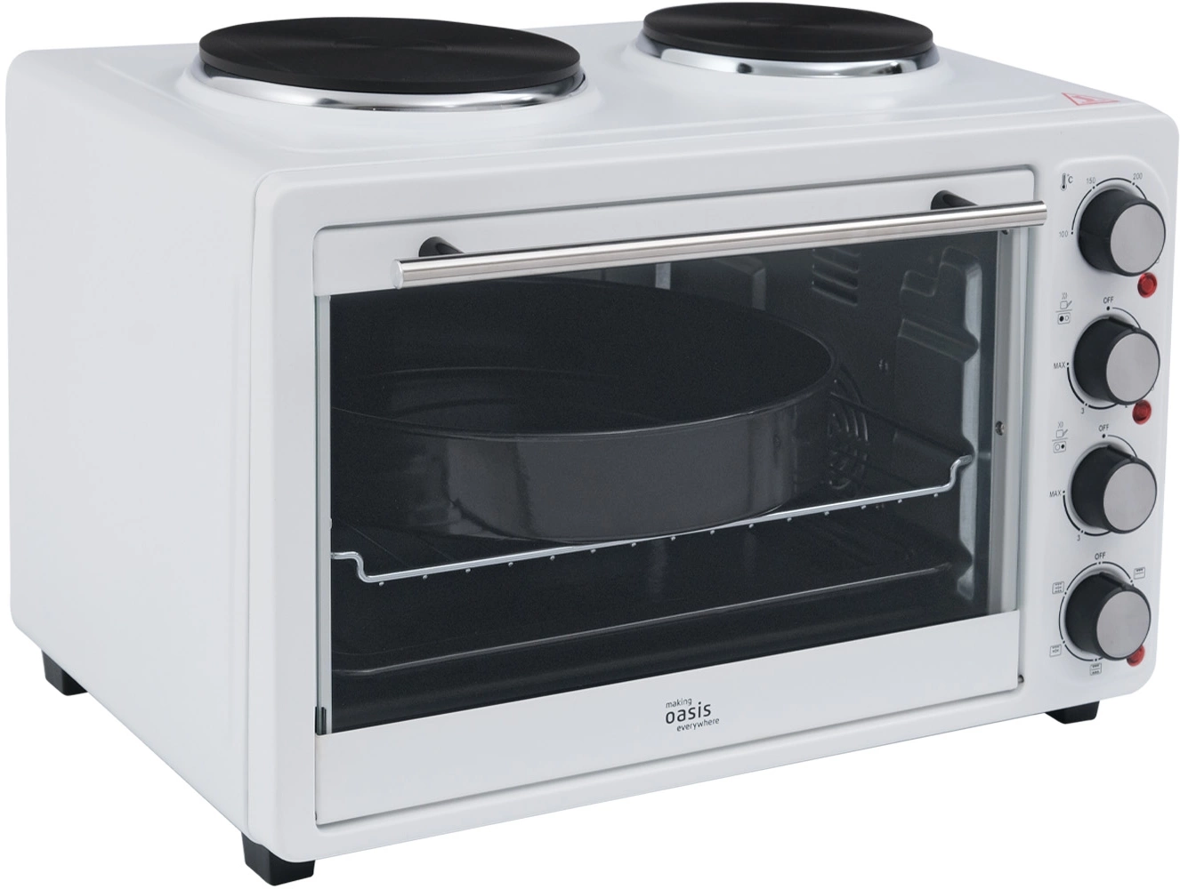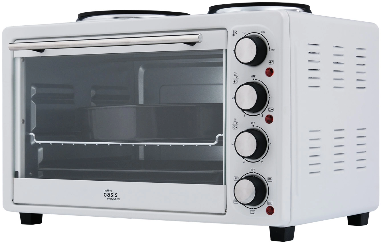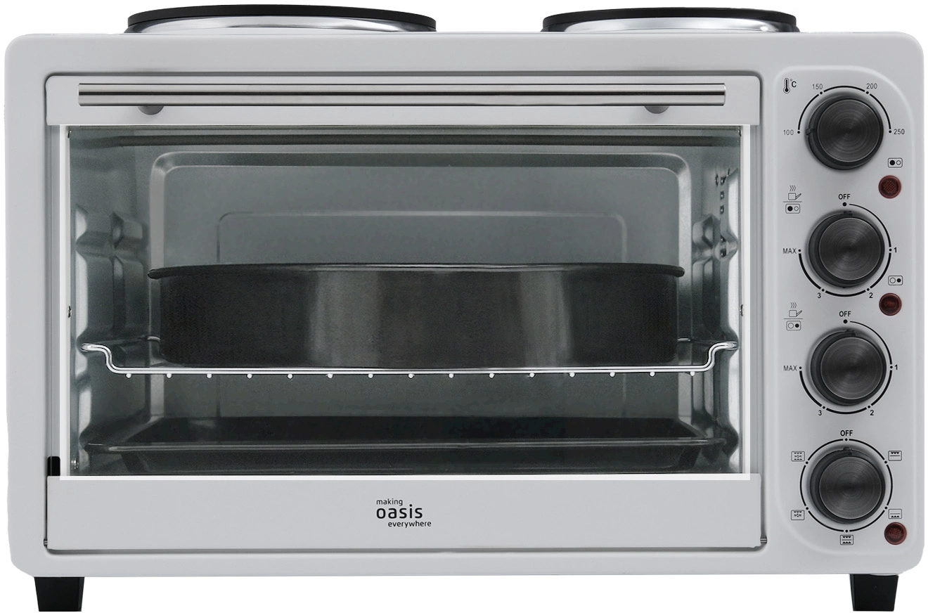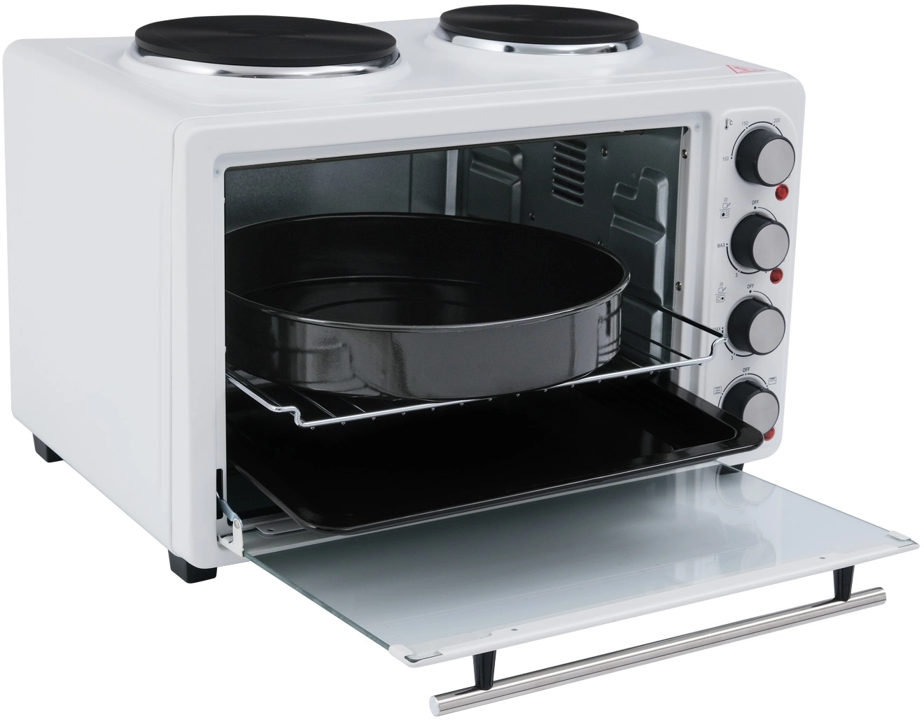 ОсобенностиМощный нагрев 1500+700/1000 Вт 2 конфорки разного диаметра Максимальная температура 250°С Эмалированная износостойкая внутренняя поверхность Функция конвекции Противерь и решётка в комплекте 2в1 - варочная панель и печь