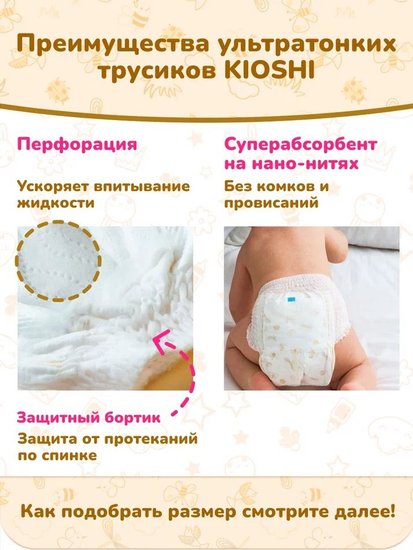 ✅Ключевые характеристикиТрусики-подгузники предназначены для детей весом от 6 до 11 кг; размер 3 (Midi). В упаковке 42 штуки. Подходят для активного возраста и приучения к горшку; обеспечивая комфорт и защиту.✅Преимущества и отличияИзделия оснащены двумя слоями японского абсорбента; закреплённого нано-нитями; что обеспечивает равномерное распределение влаги и превращение её в гель. 3D-технология предотвращает протекания; а эластичные элементы и мягкий поясок обеспечивают удобную посадку без ограничения движений.✅ПрактичностьИндикатор наполнения подсказывает момент замены; боковые швы легко разрываются для быстрого снятия; а специальная лента помогает аккуратно свернуть использованные трусики. Материал дышащий; что снижает риск раздражений.✅УникальностьИспользование инновационной технологии с нано-нитями и 3D-защитой выделяет эти трусики среди аналогов. Мягкие бортики-манжеты и поясок-embrace обеспечивают нежное обхватывание тела малыша; создавая эффект маминых объятий.✅Ключевые характеристикиТрусики-подгузники предназначены для детей весом от 6 до 11 кг; размер 3 (Midi). В упаковке 42 штуки. Подходят для активного возраста и приучения к горшку; обеспечивая комфорт и защиту.✅Преимущества и отличияИзделия оснащены двумя слоями японского абсорбента; закреплённого нано-нитями; что обеспечивает равномерное распределение влаги и превращение её в гель. 3D-технология предотвращает протекания; а эластичные элементы и мягкий поясок обеспечивают удобную посадку без ограничения движений.✅ПрактичностьИндикатор наполнения подсказывает момент замены; боковые швы легко разрываются для быстрого снятия; а специальная лента помогает аккуратно свернуть использованные трусики. Материал дышащий; что снижает риск раздражений.✅УникальностьИспользование инновационной технологии с нано-нитями и 3D-защитой выделяет эти трусики среди аналогов. Мягкие бортики-манжеты и поясок-embrace обеспечивают нежное обхватывание тела малыша; создавая эффект маминых объятий.
