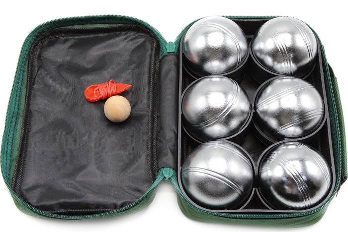 - Комплектация 6 шаров, деревянный шар-кошонет, рулетка для измерений, компактная нейлоновая сумка