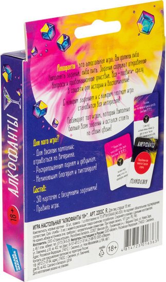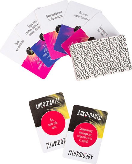 Создана для классных вечеринок в большом кругу друзей. Игроки должны вытягивать карточку и выполнять задание или выпивать.Создана для классных вечеринок в большом кругу друзей. Игроки должны вытягивать карточку и выполнять задание или выпивать.