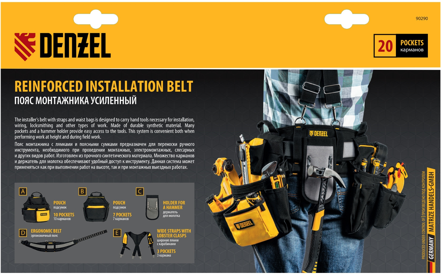 Пояс для инструментов Denzel 90290 10л 20карм. черный/желтый