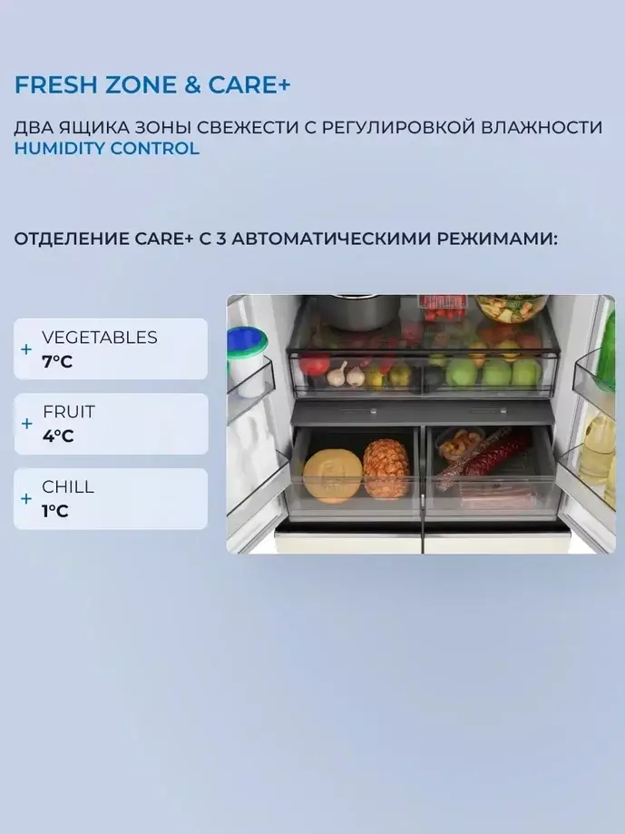 • Регулировка температуры/влажности в зоне свежести регулировка влажности
