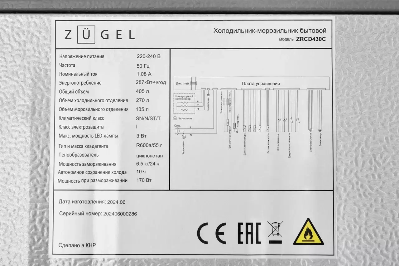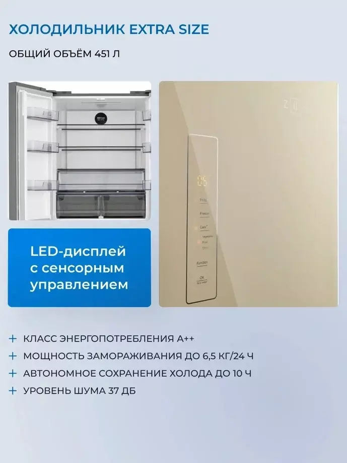 Холодильник трехкамерный Zugel ZRCD430C шампань