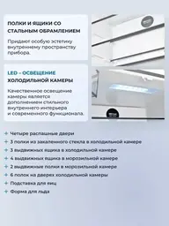 • Индикация звуковой сигнал незакрытой двери, звуковой сигнал повышения температуры, работы, температуры