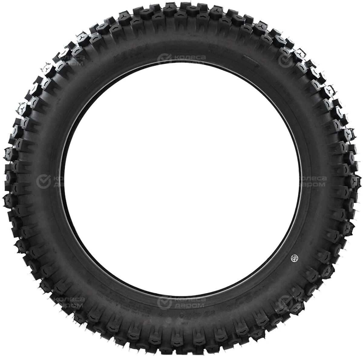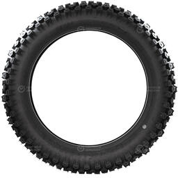 У протектора переднего колеса меньшая ширина беговой части с более мелкими по размеру блоками в виде шашечек.