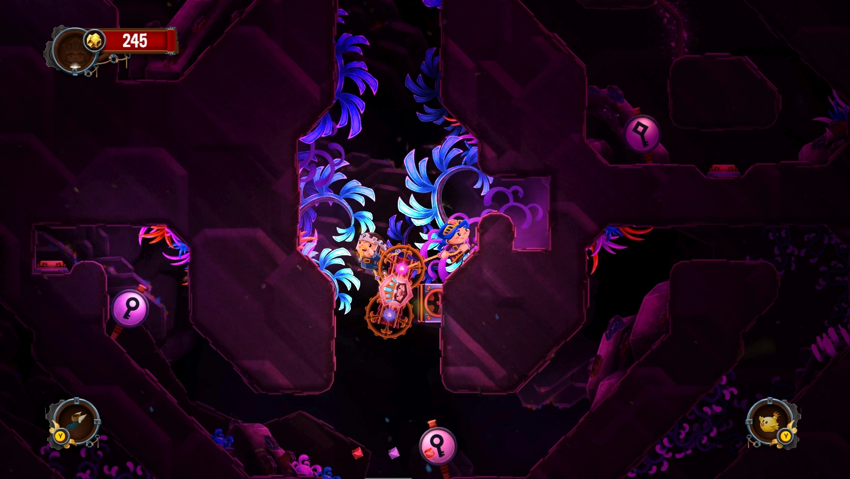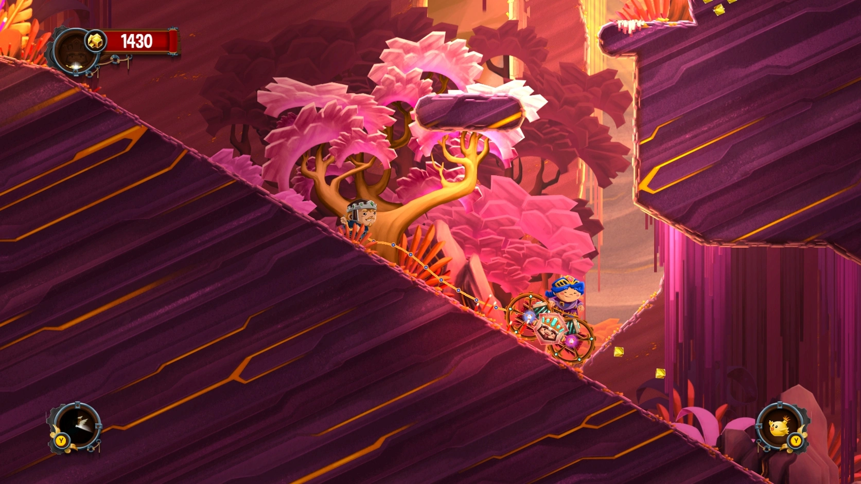 Описание игрыChariot – платформер для одного или пары игроков, в котором прекрасная принцесса и ее жених везут гроб короля по 25 уровням, а призрак усопшего старается им помешать. Насладитесь прекрасной физикой.