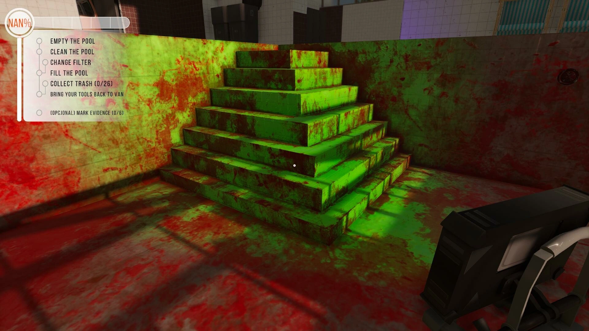 Описание игры«Симулятор очистки бассейна — это игра по очистке в стиле PowerWash Simulator, в которой вы используете различные инструменты, чтобы сделать грязные бассейны сияющими чистотой». В игре воссоздан весь процесс уборки, чистки и ухода за различными бассейнами.