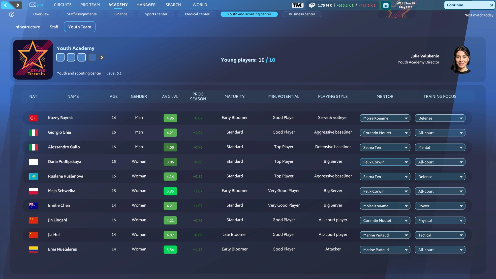 Описание игрыВозьмите под свой контроль теннисную академию и погрузитесь в захватывающий стратегический процесс. Более 2 000 турниров, от юниорских до профессиональных, и 5 000 игроков в вашем распоряжении - у вас будет все необходимое, чтобы вырастить чемпионов завтрашнего дня.