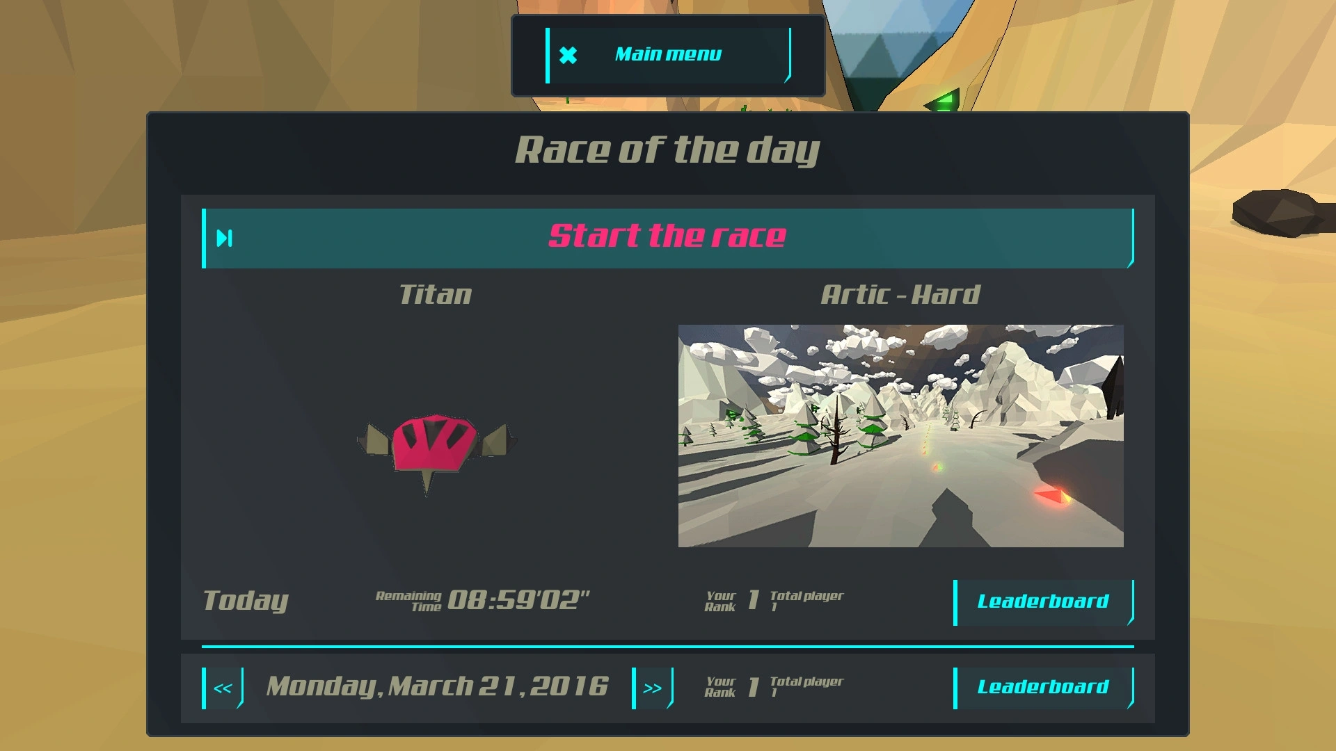 Описание игрыPolyRace — это динамичная футуристическая гоночная игра с процедурным генератором уровней. Выбирайте между 4 различными судами на воздушной подушке, каждое из которых имеет свои собственные физические свойства и уникальный научно-фантастический корпус.