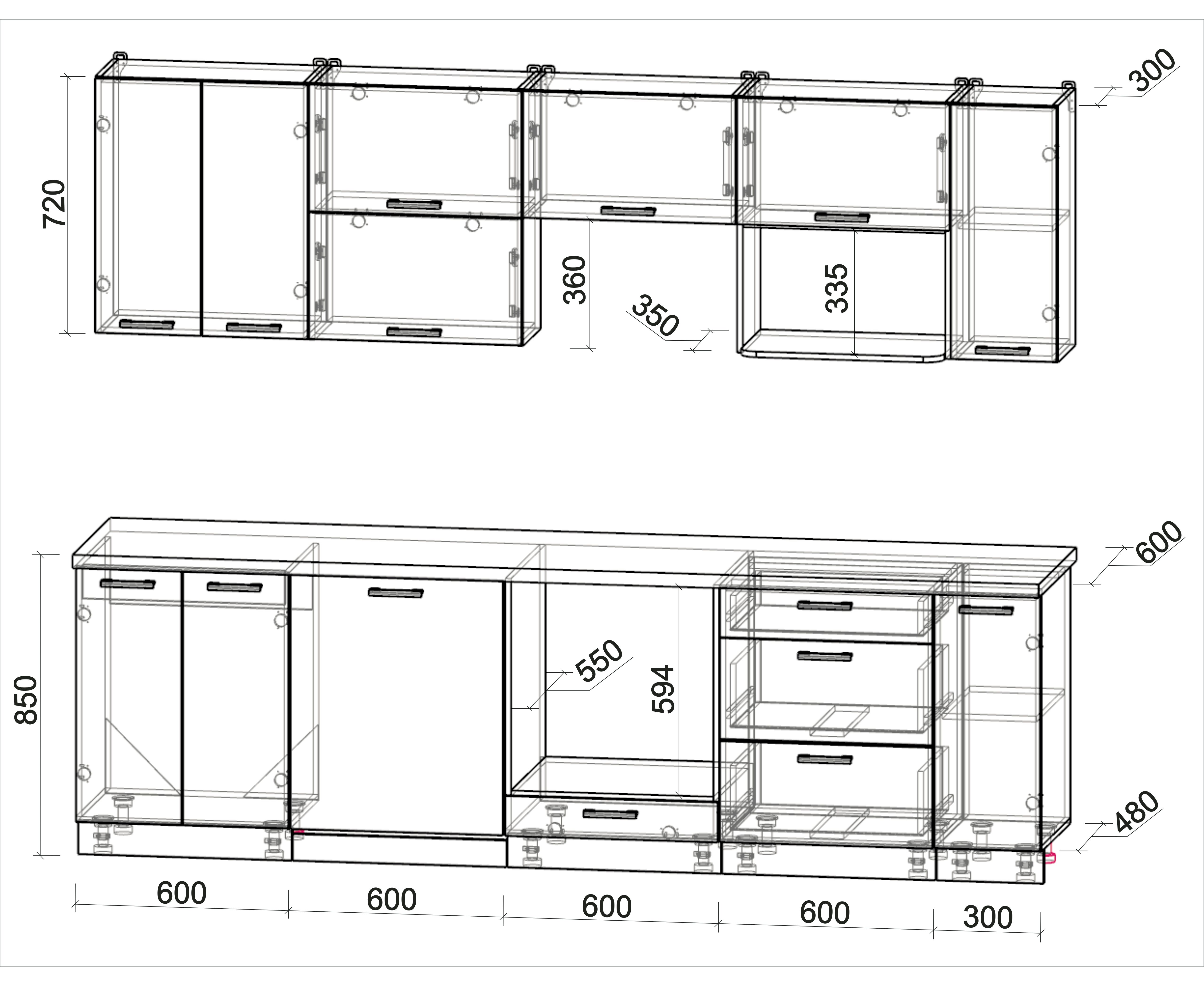 • Высота верхних шкафов 720 мм