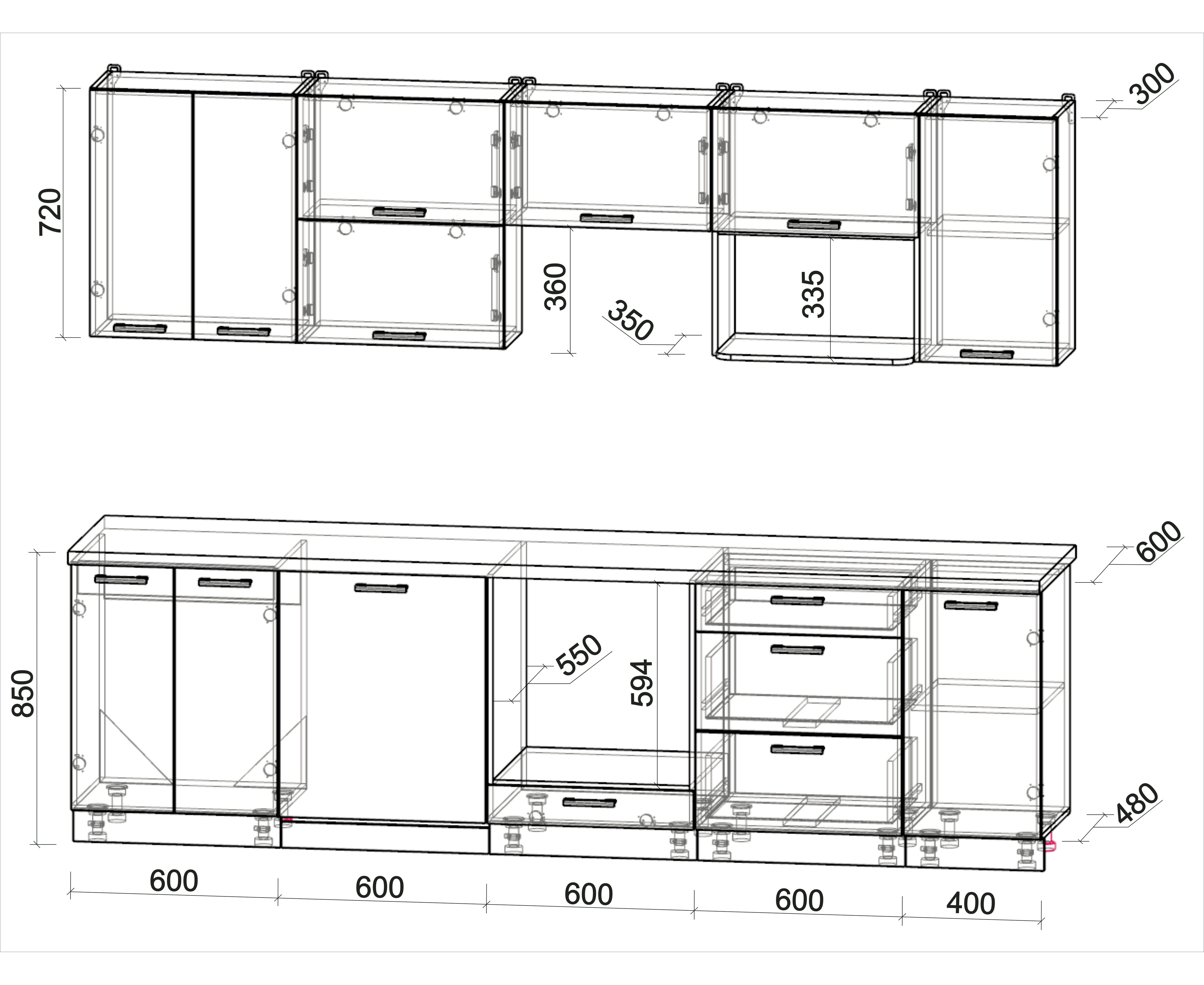 • Высота верхних шкафов 720 мм