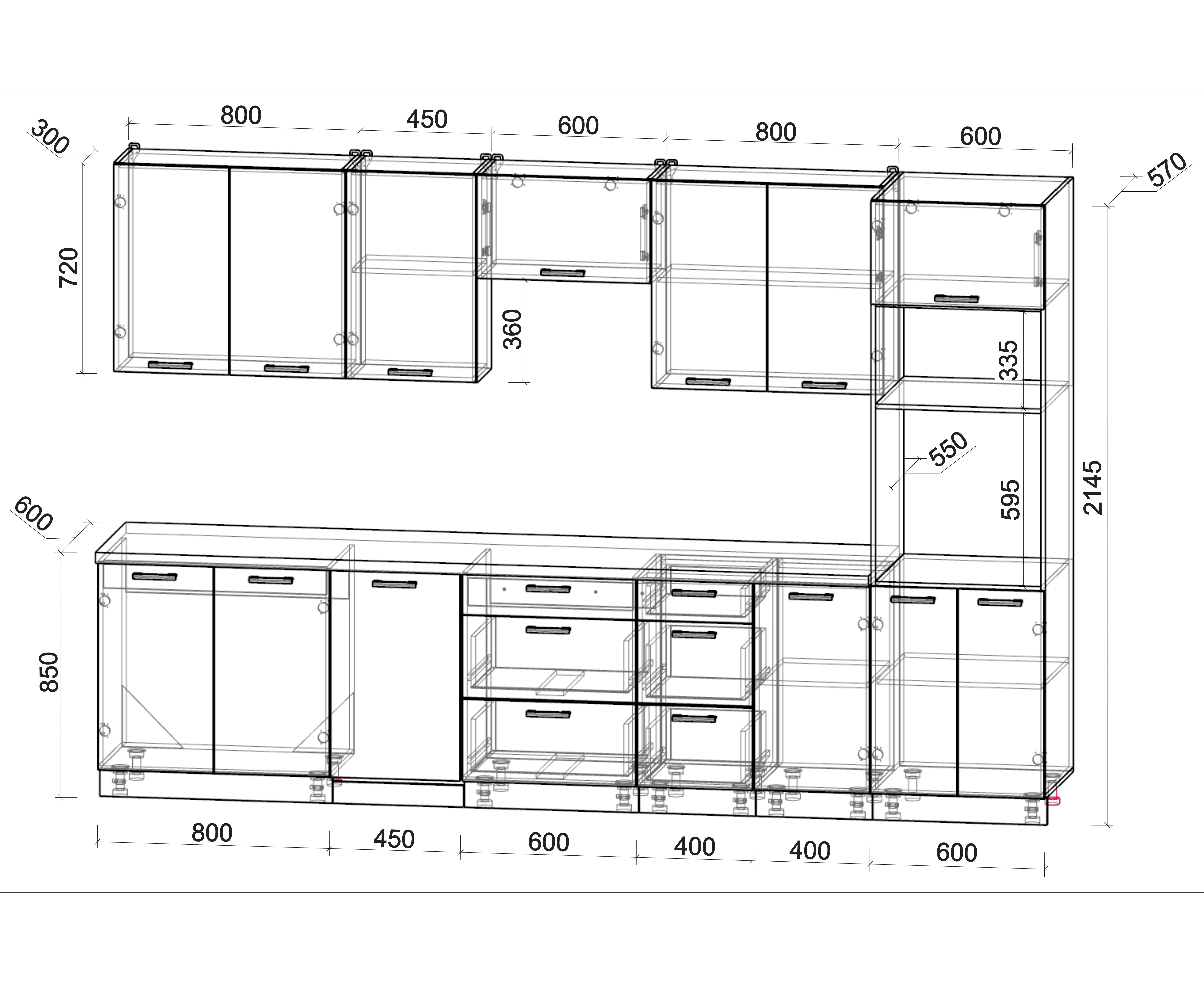 • Длина кухни 2300 мм 2400 мм 2500 мм 2600 мм 2700 мм 2800 мм 2900 мм 3000 мм 3100 мм 3200 мм 3300 мм 3400 мм 3500 мм 3600 мм 3700 мм 3800 мм 3900 мм 4000 мм