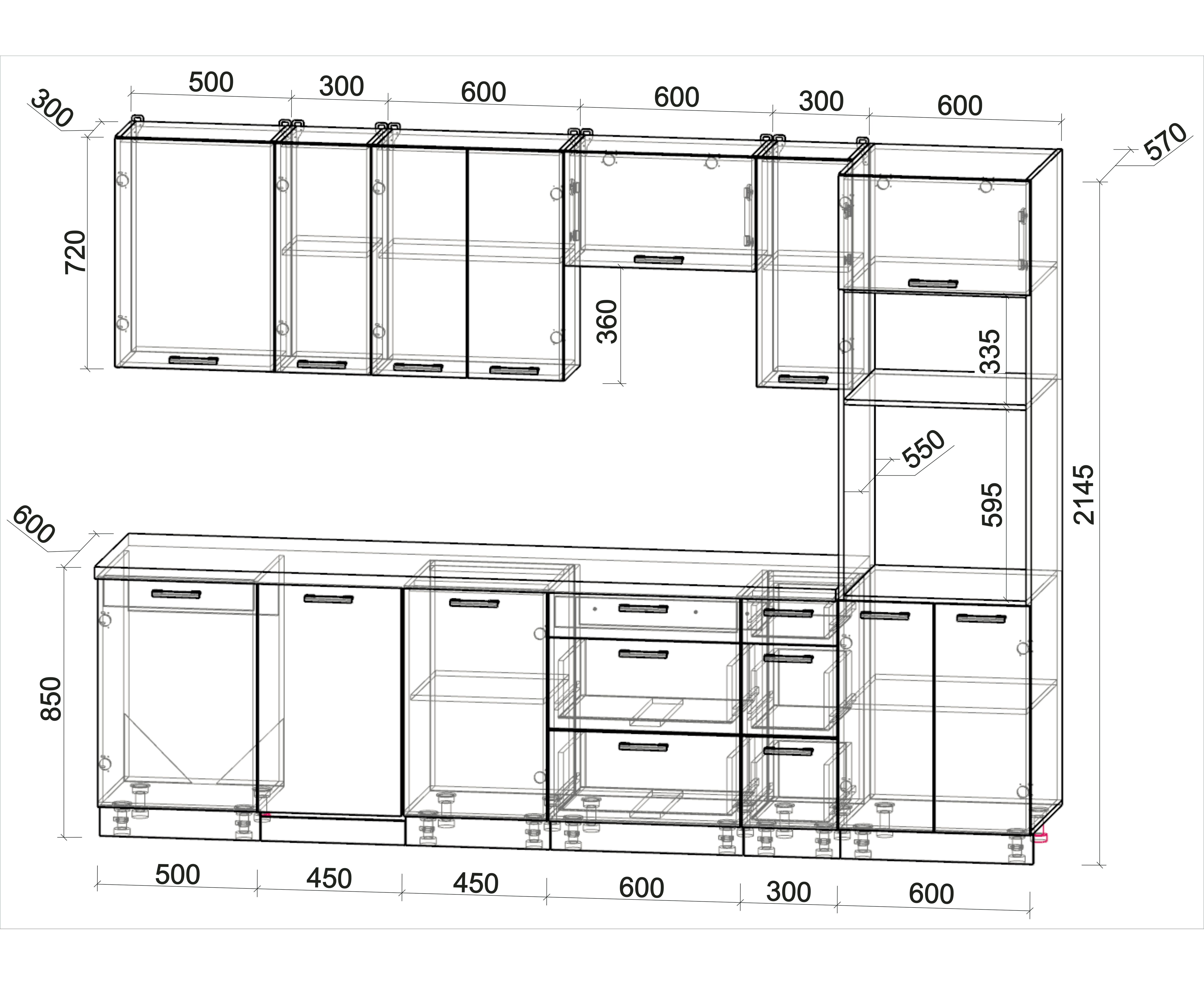 • Длина кухни 2300 мм 2400 мм 2500 мм 2600 мм 2700 мм 2800 мм 2900 мм 3000 мм 3100 мм 3200 мм 3300 мм 3400 мм 3500 мм 3600 мм 3700 мм 3800 мм 3900 мм 4000 мм