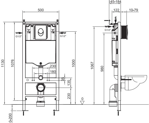 • Габариты (ВхШхГ) 1130x500x145 мм