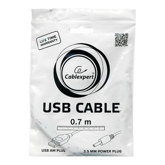 Кабель Gembird/Cablexpert CC-USB-AMP25-0.7M AM/DC 2,5мм 5V 2A для планшетов Android 0.7м черный