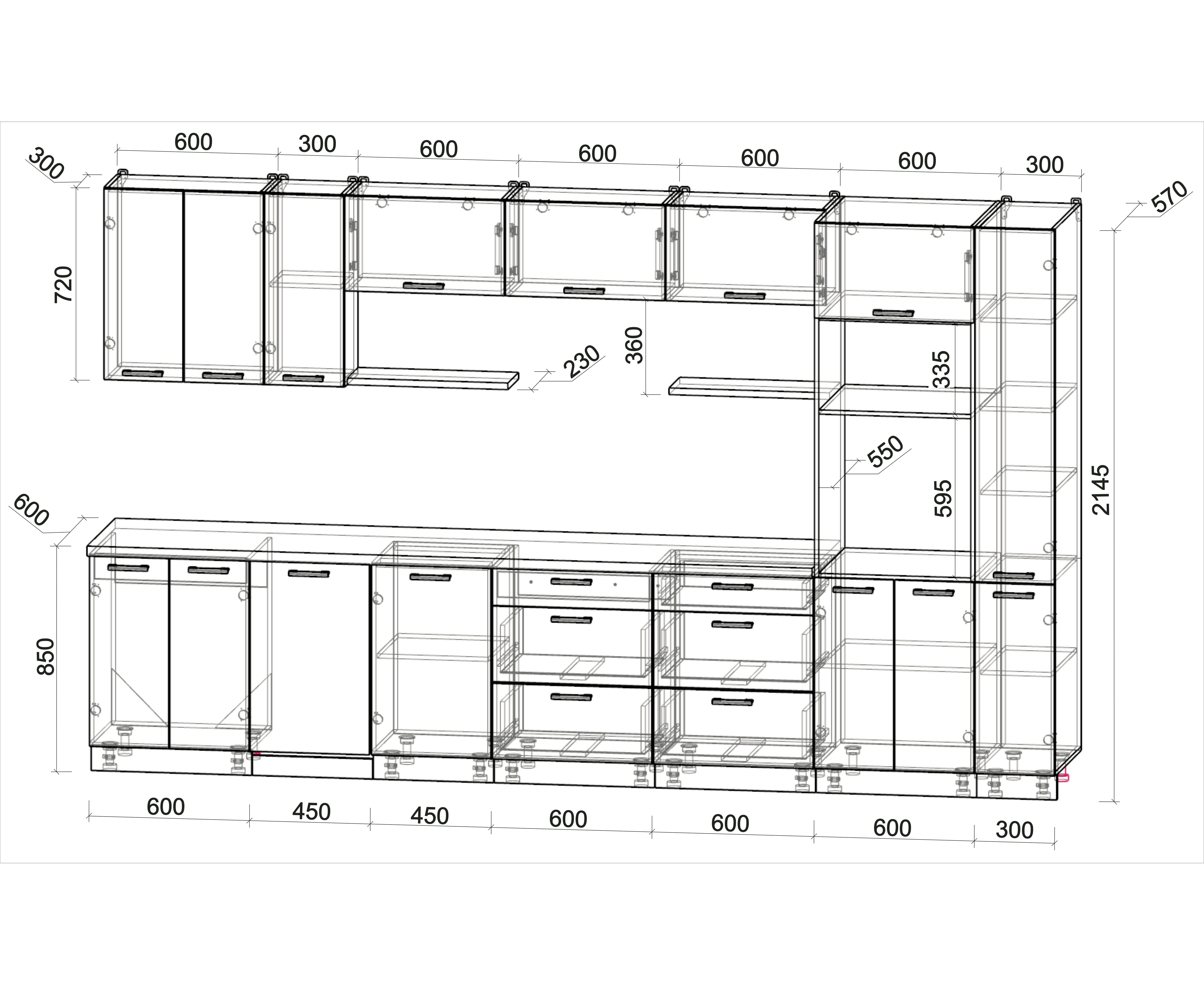 • Длина кухни 2300 мм 2400 мм 2500 мм 2600 мм 2700 мм 2800 мм 2900 мм 3000 мм 3100 мм 3200 мм 3300 мм 3400 мм 3500 мм 3600 мм 3700 мм 3800 мм 3900 мм 4000 мм