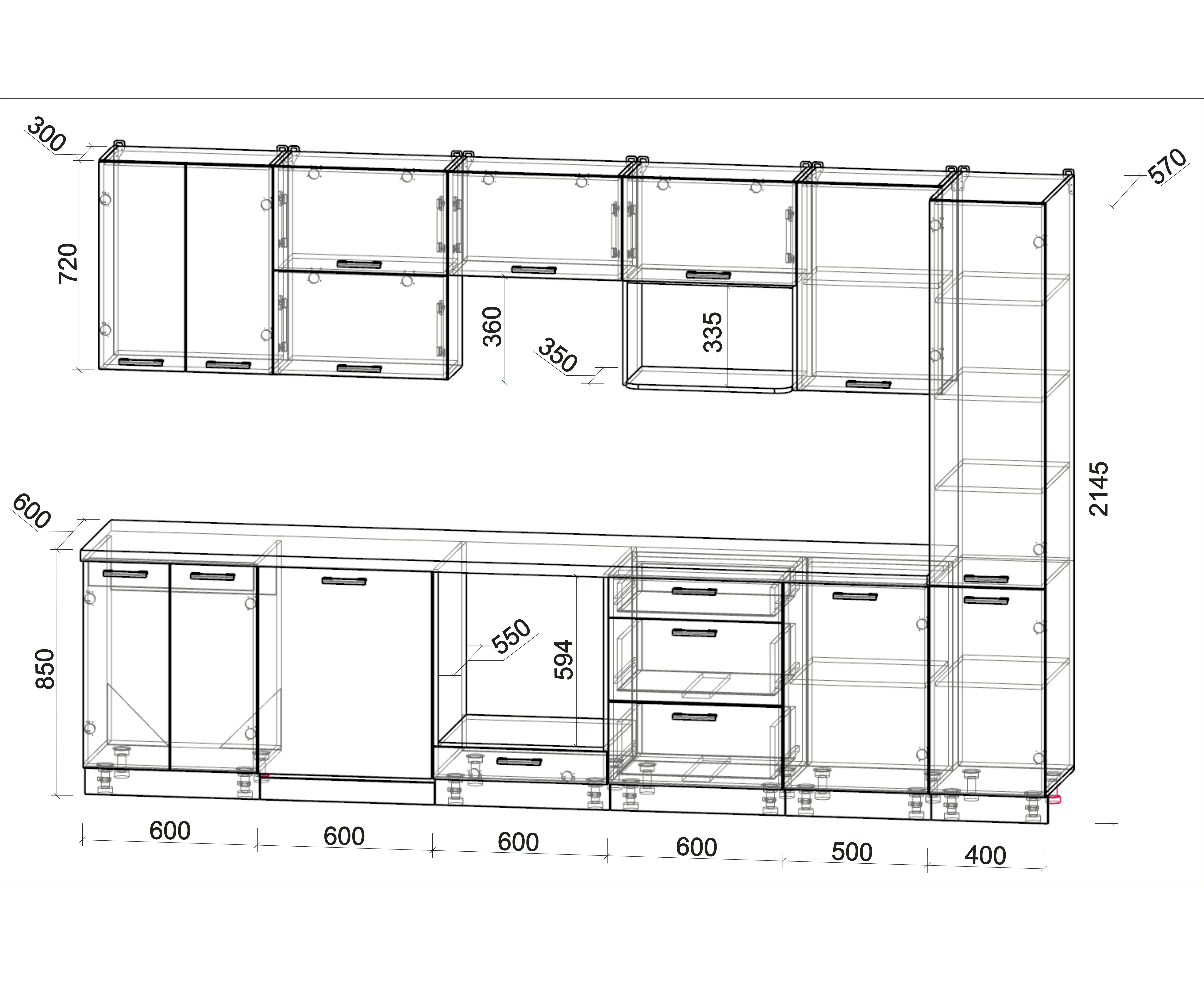 - Высота верхних шкафов 720 мм