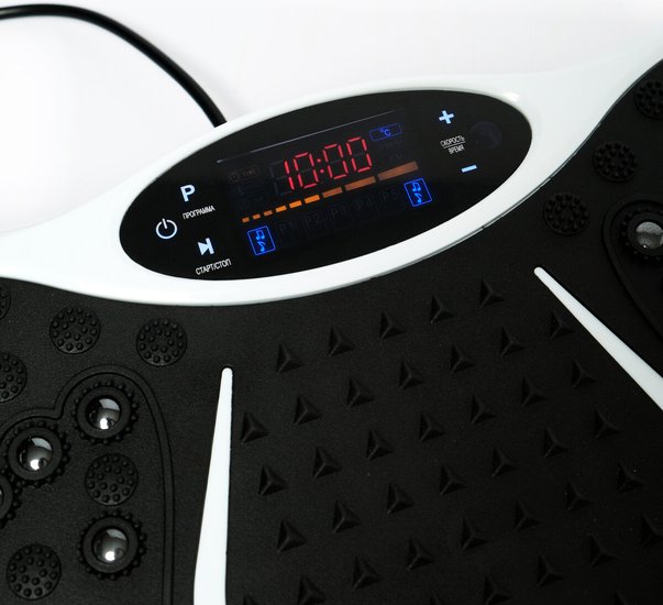 ✅Ключевые характеристикиВысокоэффективный тренажер виброплатформа для фитнеса и домашних тренировок, рассчитан на пользователей с весом до 150 кг. Оснащен 120 скоростями и 5 программами, что позволяет подобрать оптимальный режим для разных уровней подготовки и целей.✅Преимущества и отличияТренировки на платформе обеспечивают рефлекторное сокращение мышц за счет вибраций разной частоты, что позволяет заменить час занятий в спортзале всего 10 минутами работы на устройстве. Благодаря массажному эффекту тренажер способствует расслаблению и не вызывает сильной усталости.✅ПрактичностьПлатформа оснащена противоскользящим покрытием, устойчивыми резиновыми ножками, не царапает пол и не скользит по поверхности. В комплект входят эспандеры для тренировки мышц рук и пульт дистанционного управления для удобной настройки.✅УникальностьВиброплатформа поддерживает широкий диапазон амплитуды вибрации 0-12 мм и частоту 50 Гц, что позволяет индивидуально настраивать интенсивность тренировки. Компактные габариты делают тренажер удобным для домашнего использования без необходимости выделять отдельное место.✅Ключевые характеристикиВысокоэффективный тренажер виброплатформа для фитнеса и домашних тренировок, рассчитан на пользователей с весом до 150 кг. Оснащен 120 скоростями и 5 программами, что позволяет подобрать оптимальный режим для разных уровней подготовки и целей.✅Преимущества и отличияТренировки на платформе обеспечивают рефлекторное сокращение мышц за счет вибраций разной частоты, что позволяет заменить час занятий в спортзале всего 10 минутами работы на устройстве. Благодаря массажному эффекту тренажер способствует расслаблению и не вызывает сильной усталости.✅ПрактичностьПлатформа оснащена противоскользящим покрытием, устойчивыми резиновыми ножками, не царапает пол и не скользит по поверхности. В комплект входят эспандеры для тренировки мышц рук и пульт дистанционного управления для удобной настройки.✅УникальностьВиброплатформа поддерживает широкий диапазон амплитуды вибрации 0-12 мм и частоту 50 Гц, что позволяет индивидуально настраивать интенсивность тренировки. Компактные габариты делают тренажер удобным для домашнего использования без необходимости выделять отдельное место.