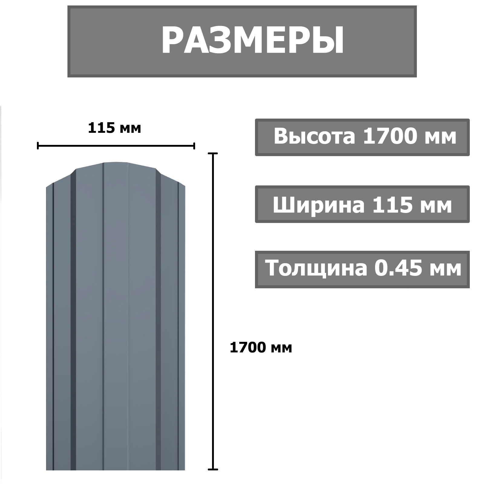 Штакетник металлический Комплектпрофиль Трапеция 115мм Глянцевый RAL 7024/7024 ПЭ 0.45x1700мм (1.7м, 10шт)
