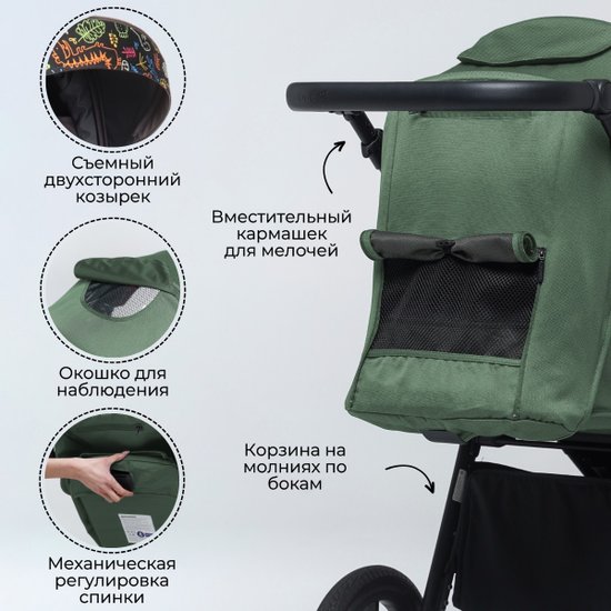 ✅Ключевые характеристикиПрогулочная коляска предназначена для комфортных и безопасных прогулок с малышом. Она оснащена просторным сиденьем с регулируемой спинкой в трёх положениях; включая горизонтальное; и пятиточечными ремнями безопасности. Максимальная грузоподъемность составляет 22 кг; вес коляски 12 кг; размеры в разложенном виде 82х56х107 см.✅Преимущества и отличияКоляска выделяется проходимостью благодаря большим псевдонадувным бескамерным колесам диаметром 20 см спереди и 29 см сзади; которые не боятся проколов. Пружинная амортизация на всех колесах и дополнительная SAS-амортизация на передних обеспечивают плавный ход и комфорт для ребёнка.✅ПрактичностьМодель складывается одной рукой по принципу "книга" с тканью внутрь; что облегчает хранение и транспортировку. Вместительная корзина с доступом из положения лежа и молнией предотвращает выпадение вещей. В комплект входят подстаканник; москитная сетка; дождевик; чехол на ножки и рюкзак; который можно использовать как пеленальный матрасик.✅УникальностьГлубокий регулируемый капюшон с водонепроницаемой тканью и солнцезащитным покрытием защищает малыша от непогоды и яркого солнца. Подножка с эко-кожей легко очищается; а встроенный кармашек для москитной сетки предотвращает её потерю. Светоотражающие элементы на различных частях коляски повышают безопасность в тёмное время суток.✅Ключевые характеристикиПрогулочная коляска предназначена для комфортных и безопасных прогулок с малышом. Она оснащена просторным сиденьем с регулируемой спинкой в трёх положениях; включая горизонтальное; и пятиточечными ремнями безопасности. Максимальная грузоподъемность составляет 22 кг; вес коляски 12 кг; размеры в разложенном виде 82х56х107 см.✅Преимущества и отличияКоляска выделяется проходимостью благодаря большим псевдонадувным бескамерным колесам диаметром 20 см спереди и 29 см сзади; которые не боятся проколов. Пружинная амортизация на всех колесах и дополнительная SAS-амортизация на передних обеспечивают плавный ход и комфорт для ребёнка.✅ПрактичностьМодель складывается одной рукой по принципу "книга" с тканью внутрь; что облегчает хранение и транспортировку. Вместительная корзина с доступом из положения лежа и молнией предотвращает выпадение вещей. В комплект входят подстаканник; москитная сетка; дождевик; чехол на ножки и рюкзак; который можно использовать как пеленальный матрасик.✅УникальностьГлубокий регулируемый капюшон с водонепроницаемой тканью и солнцезащитным покрытием защищает малыша от непогоды и яркого солнца. Подножка с эко-кожей легко очищается; а встроенный кармашек для москитной сетки предотвращает её потерю. Светоотражающие элементы на различных частях коляски повышают безопасность в тёмное время суток.