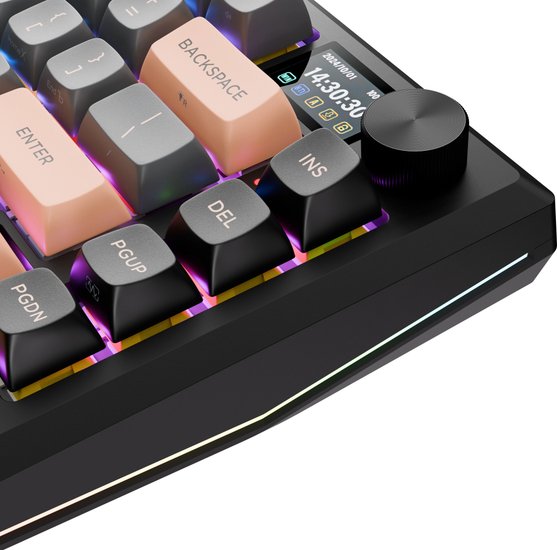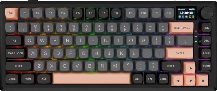 Eclipse Pro — клавиатура с металлическим корпусом, точным LCD-дисплеем и кнопкой-крутилкой. Подключение через 2.4 ГГц, Bluetooth или провод, плавная клавиатура на gasket mount, многослойная шумоизоляция и настраиваемая RGB-подсветка. Комфорт, стабильность и стиль в каждой детали.Eclipse Pro — клавиатура с металлическим корпусом, точным LCD-дисплеем и кнопкой-крутилкой. Подключение через 2.4 ГГц, Bluetooth или провод, плавная клавиатура на gasket mount, многослойная шумоизоляция и настраиваемая RGB-подсветка. Комфорт, стабильность и стиль в каждой детали.