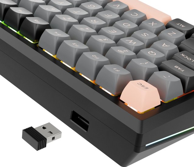 Комплект поставки- USB-приемник- пуллер для для кейкапов/переключателей - кабель для зарядки/проводного подключения USB Type-C - USB Type-A- документация