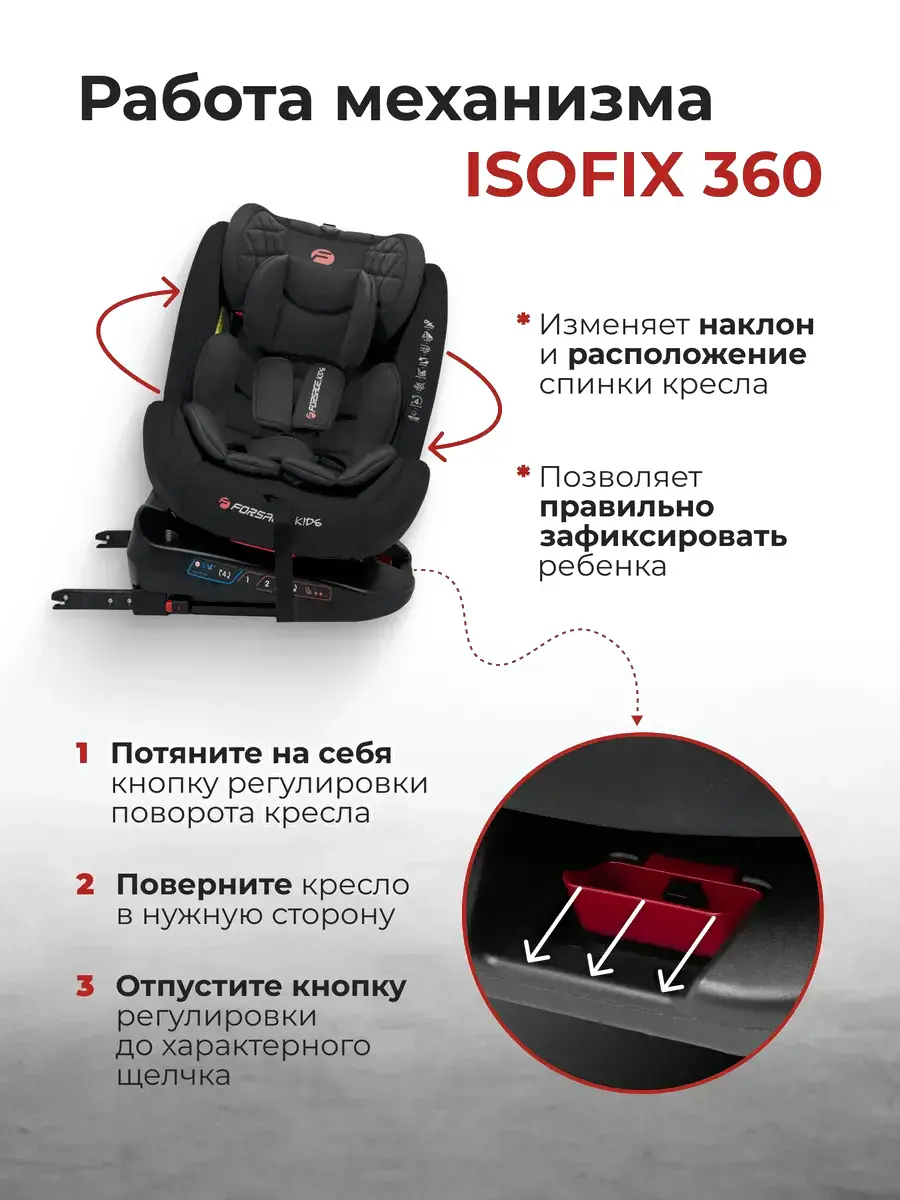 • Крепление кресла штатный ремень автомобиля, Isofix