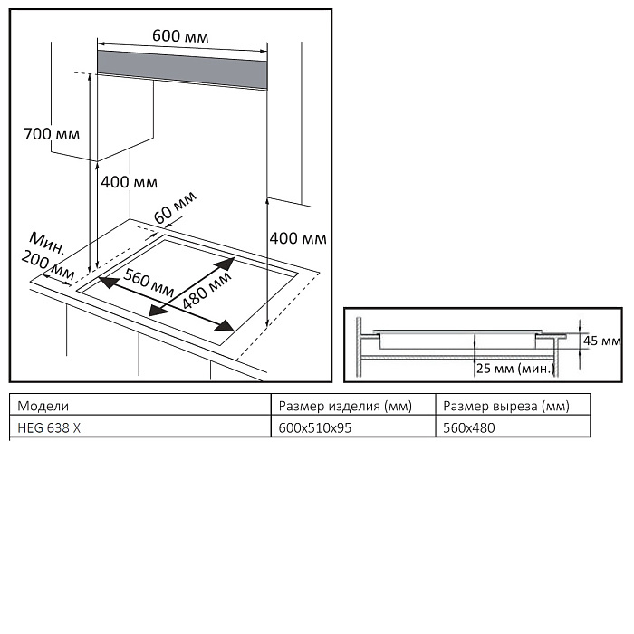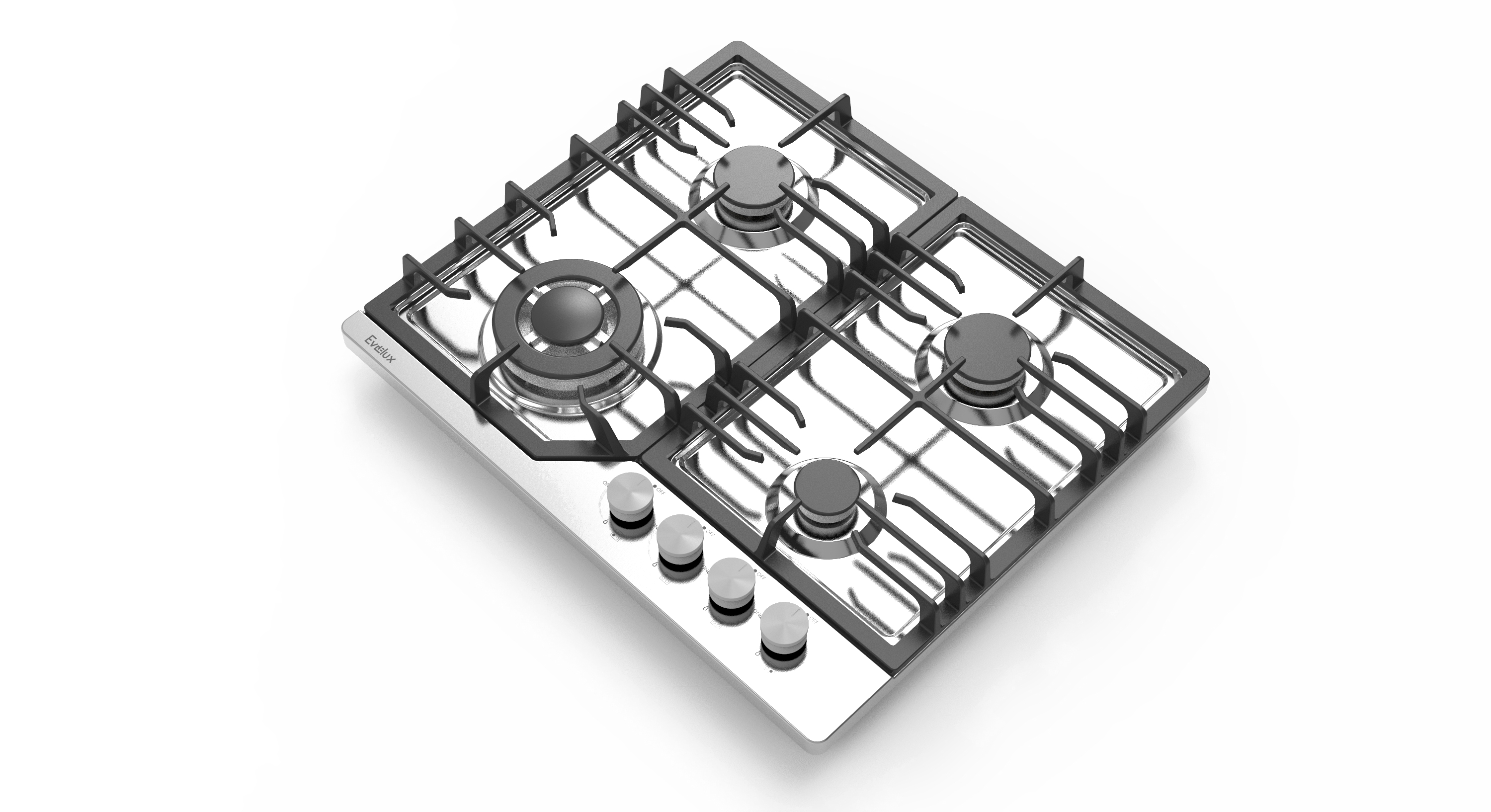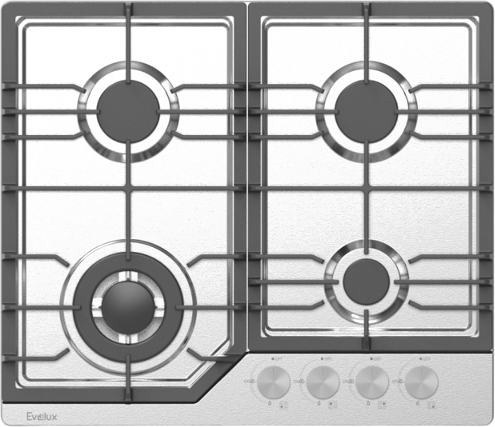 - Тип конфорок/зон нагрева газовые стандартные (3 шт.), газовые «Двойная корона» (1 шт.)
