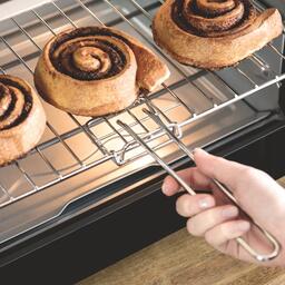 • В комплекте решетка, противень, поддон для крошек, вертел