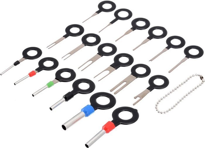 • Универсальный набор из 18 предметов для демонтажа контактов (соединителей). Комплект состоит из 3 типов ключей (одиночных, двойных и трубчатые) различной толщины. Идеально подходит для мастеров и любителей занимающихся ремонтом автомобильной электрики или компьютерного оборудования.Характеристики и спецификация продукта:Продукт совершенно новый, высокого качества.Профессиональный набор ключей для снятия штифтов (коннекторов).Облегчает удаление поврежденных коннекторов из разъемов (например, MOLEX).Простое использование (достаточно уверенным движением удалить PIN-код подцепив,продавив его подходящим ключом).Материал: сталь + резинаДлина ключей: около 5 смКоличество ключей в наборе: 18Ключи трубчатые (толщина от 2 до 6,2 мм): 6 шт.Ключи одинарные (толщиной от 0,8 до 2 мм): 6 шт.Ключи двойной (толщина от 2 до 8 мм): 6 шт. Универсальный набор из 18 предметов для демонтажа контактов (соединителей). Комплект состоит из 3 типов ключей (одиночных, двойных и трубчатые) различной толщины. Идеально подходит для мастеров и любителей занимающихся ремонтом автомобильной электрики или компьютерного оборудования.Характеристики и спецификация продукта:Продукт совершенно новый, высокого качества.Профессиональный набор ключей для снятия штифтов (коннекторов).Облегчает удаление поврежденных коннекторов из разъемов (например, MOLEX).Простое использование (достаточно уверенным движением удалить PIN-код подцепив,продавив его подходящим ключом).Материал: сталь + резинаДлина ключей: около 5 смКоличество ключей в наборе: 18Ключи трубчатые (толщина от 2 до 6,2 мм): 6 шт.Ключи одинарные (толщиной от 0,8 до 2 мм): 6 шт.Ключи двойной (толщина от 2 до 8 мм): 6 шт.