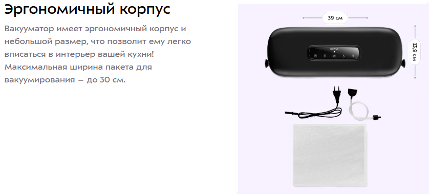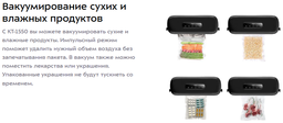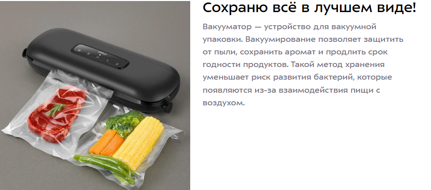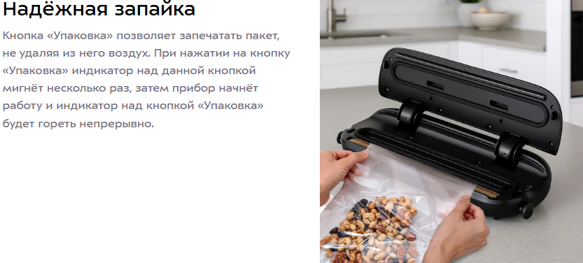 • Возможность использования упаковки для вакуумирования