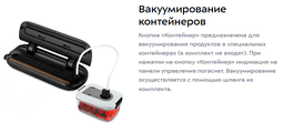 • Вид упаковочного материала в комплекте вакуумные пакеты (10 шт), вакуумный шланг (1 шт)