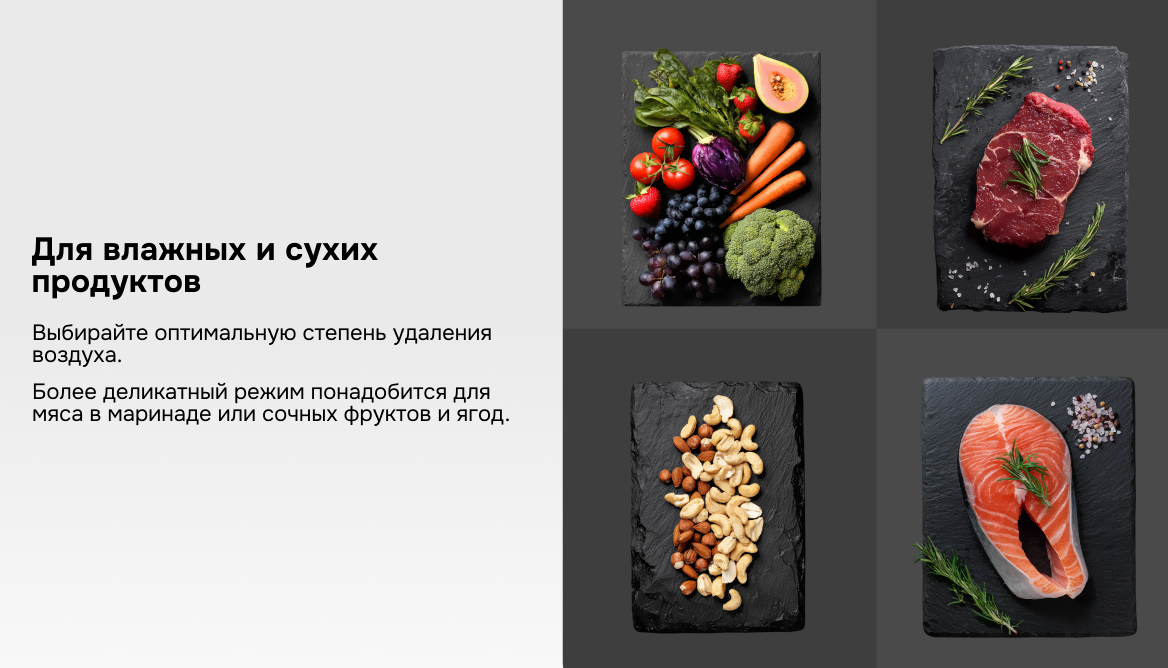 • Возможность использования упаковки для вакуумирования