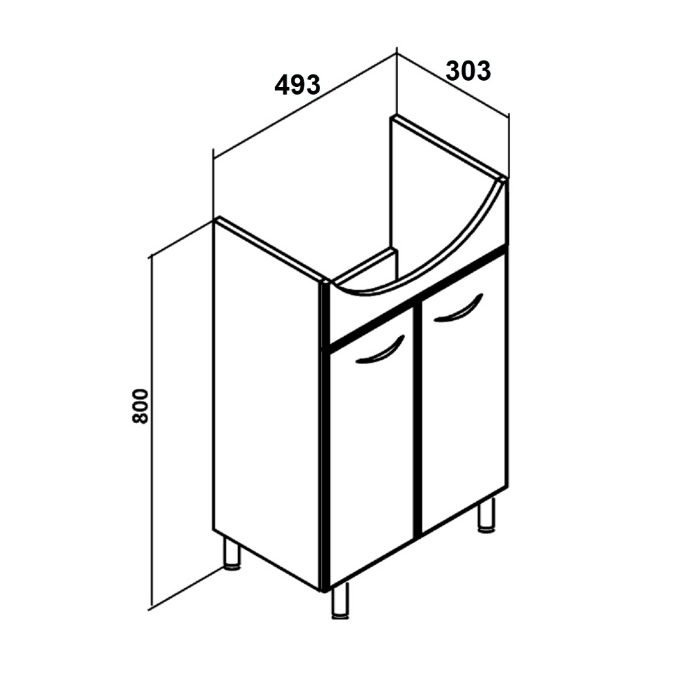 - Ширина тумбы под умывальник 49.3 см