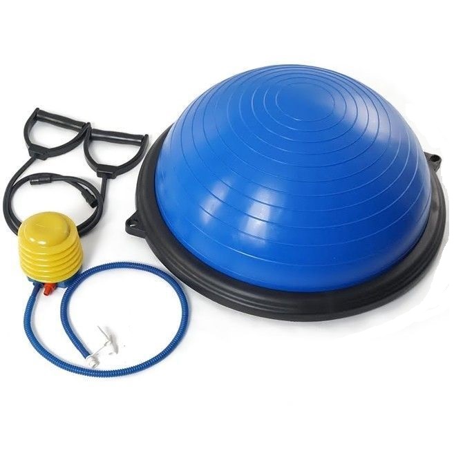 Балансировочная платформа оснащена съемными эспандерами с двух сторон, имеет форму полусферы. В комплекте насос.