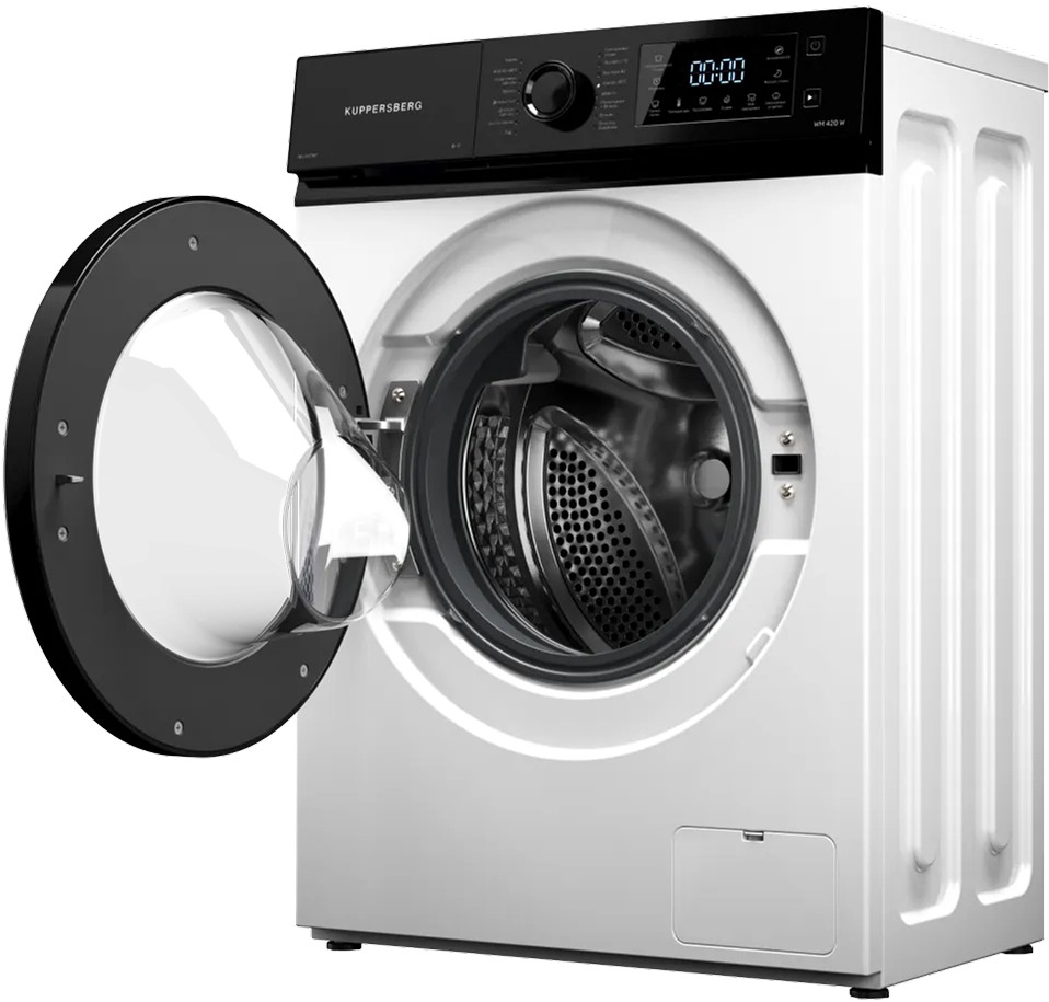 Стиральная машина Куперсберг WM 420 W выпущена в стандартной конфигурации — устанавливается отдельно, поэтому рекомендуем заранее выделить для нее место в квартире. Благодаря классической фронтальной загрузке она привычна и удобна даже для тех, кто не очень разбирается в технике. За счет небольшой глубины данную модель предпочитают владельцы небольших квартир, студий. В барабан помещается не так много вещей за один раз, но тем, кто не любит копить вещи или просто мало стирает, будет достаточно. Максимальная загрузка: 6 кг.