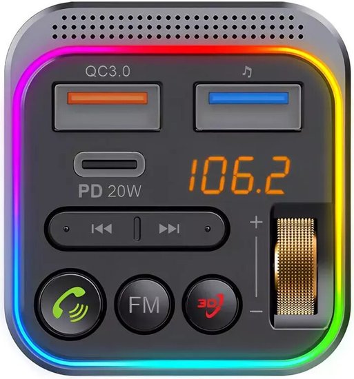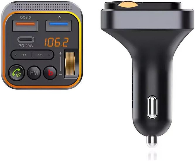 - Хотите слушать любимые мелодии в машине, не растрачивая время на поиск радиостанций или переключение дисков? Беспроводной FM-модулятор это то, что вам просто необходимо! Он обеспечивает трансляцию аудио через стандартную автомобильную стереосистему с помощьюрадиосигналов. Благодаря наличию Bluetooth, передатчик соединяется с iPod, iPad, iPhone, MP3-плеерами, ноутбуками, планшетами и смартфонами. Просто настройте FM-канал, подключите гаджет и наслаждайтесь беспрерывным аудио-воспроизведением в трехмерном объемном звучании. Надежный трансмиттер с несколькими цветами светодиодной подсветки превратит ваш автомобиль в собственный музыкальный центр! Уникальный адаптер также сочетает в себе функции зарядника и гарнитуры для громкой связи, благодаря встроенному микрофону. Приятным бонусом для любого водителя станет активация голосового помощника (Siri и Google). FM-адаптер оснащен двумя портами Type-A и одним Type-C. Для воспроизведения музыки с USB-флешки используйте специальный голубой разъем со значком. Оранжевое «гнездо» USB-А (QC 3.0) и USB-C (PD 20W) предназначены для быстрой зарядки. С блютуз переходником вы больше не будете переживать из-за разрядившегося аккумулятора. С нашим агрегатом ваши гаджеты всегда будут заряжены во время поездок.Благодаря универсальному подключению через прикуриватель, FM-модуль подходит любой марке авто. Не платите большие суммы за новую магнитолу – приобретайте наш компактный модулятор за доступную цену и воспроизводите свои плейлисты, аудиокниги. Наш товар станет полезным подарком для женщин и мужчин на любой праздник. Удобное аудио-управление, функциональность и высокое качество звучания делают это устройство идеальным для всех меломанов-автолюбителей. Закажите прямо сейчас и при каждой поездке будете восхищаться качественным звуком современных треков и комфортным общением. Хотите слушать любимые мелодии в машине, не растрачивая время на поиск радиостанций или переключение дисков? Беспроводной FM-модулятор это то, что вам просто необходимо! Он обеспечивает трансляцию аудио через стандартную автомобильную стереосистему с помощьюрадиосигналов. Благодаря наличию Bluetooth, передатчик соединяется с iPod, iPad, iPhone, MP3-плеерами, ноутбуками, планшетами и смартфонами. Просто настройте FM-канал, подключите гаджет и наслаждайтесь беспрерывным аудио-воспроизведением в трехмерном объемном звучании. Надежный трансмиттер с несколькими цветами светодиодной подсветки превратит ваш автомобиль в собственный музыкальный центр! Уникальный адаптер также сочетает в себе функции зарядника и гарнитуры для громкой связи, благодаря встроенному микрофону. Приятным бонусом для любого водителя станет активация голосового помощника (Siri и Google). FM-адаптер оснащен двумя портами Type-A и одним Type-C. Для воспроизведения музыки с USB-флешки используйте специальный голубой разъем со значком. Оранжевое «гнездо» USB-А (QC 3.0) и USB-C (PD 20W) предназначены для быстрой зарядки. С блютуз переходником вы больше не будете переживать из-за разрядившегося аккумулятора. С нашим агрегатом ваши гаджеты всегда будут заряжены во время поездок.Благодаря универсальному подключению через прикуриватель, FM-модуль подходит любой марке авто. Не платите большие суммы за новую магнитолу – приобретайте наш компактный модулятор за доступную цену и воспроизводите свои плейлисты, ау