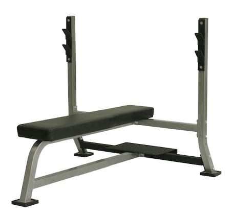 Скамья для жима горизонтальная со страховочной платформой. С камья оснащена высококачественными крюками для штанг.